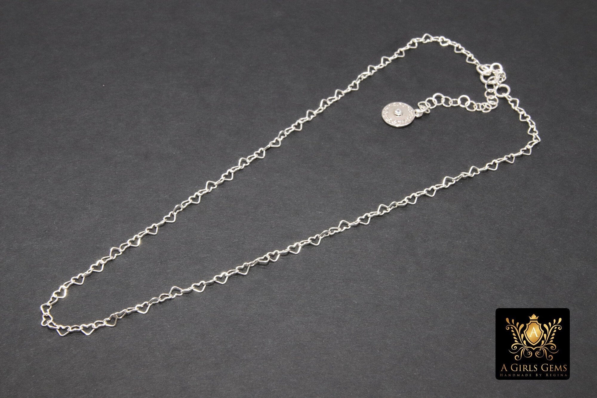 • 925 Sterling Silver Dainty Heart Chain is approximately 3.8 mm links in rectangle shape.
