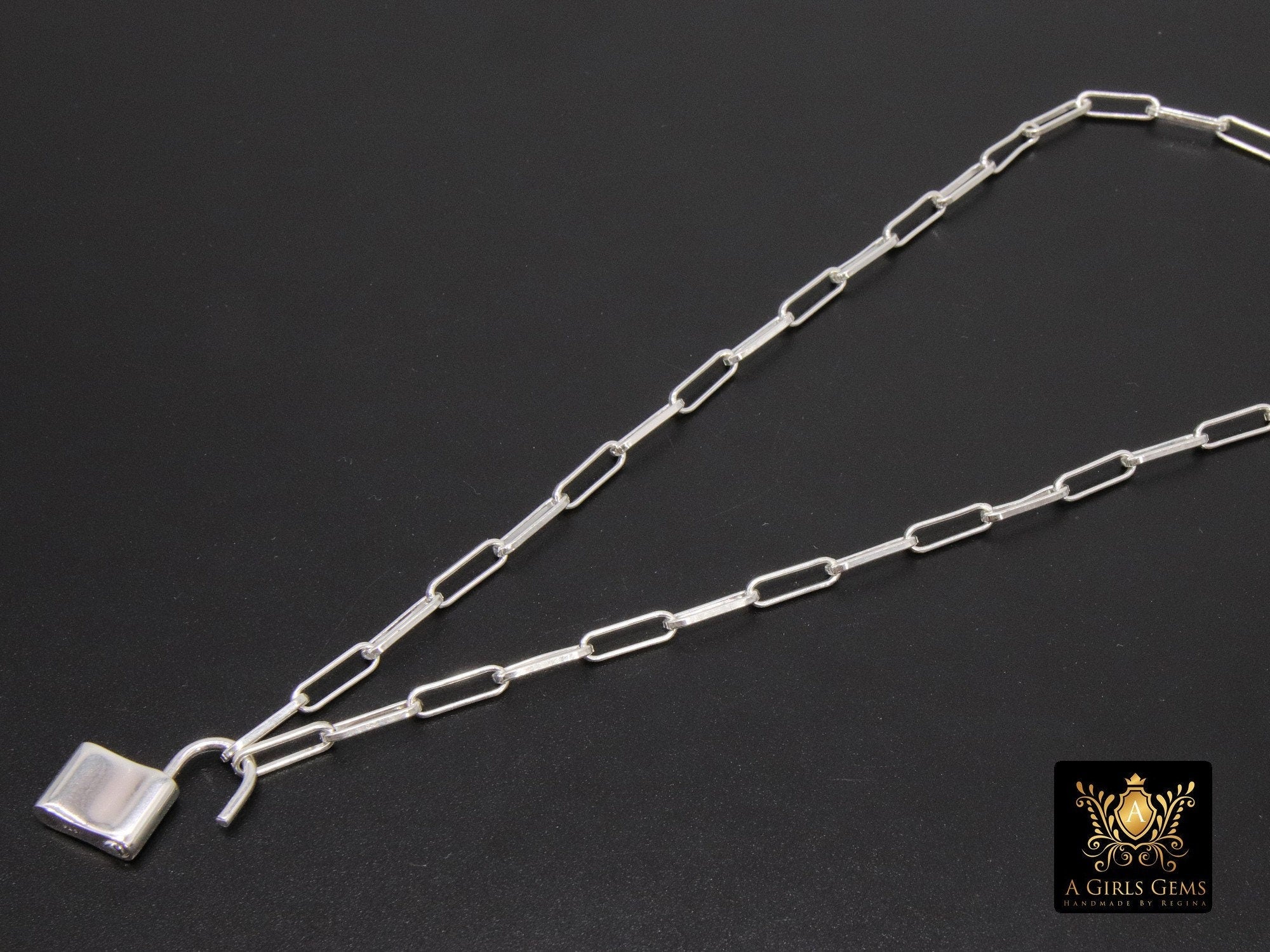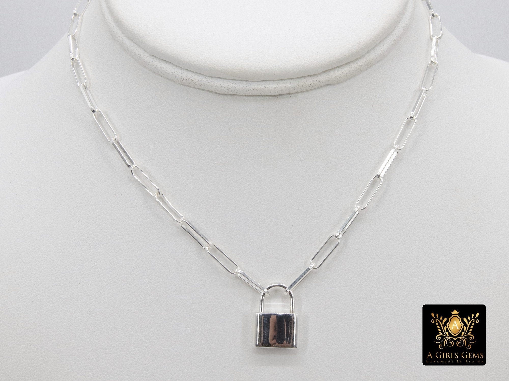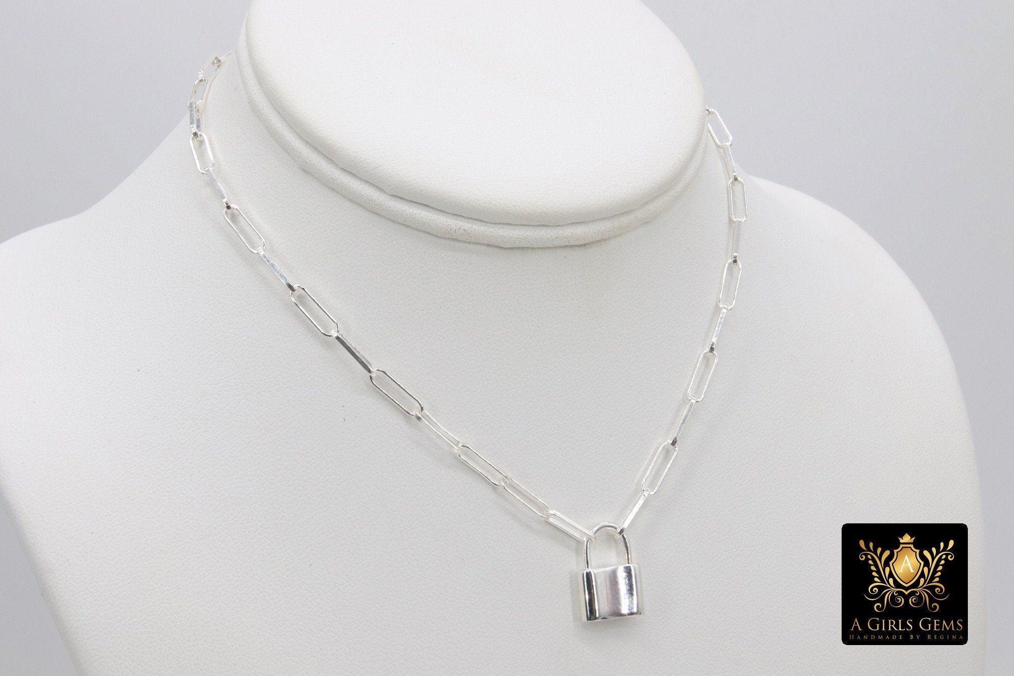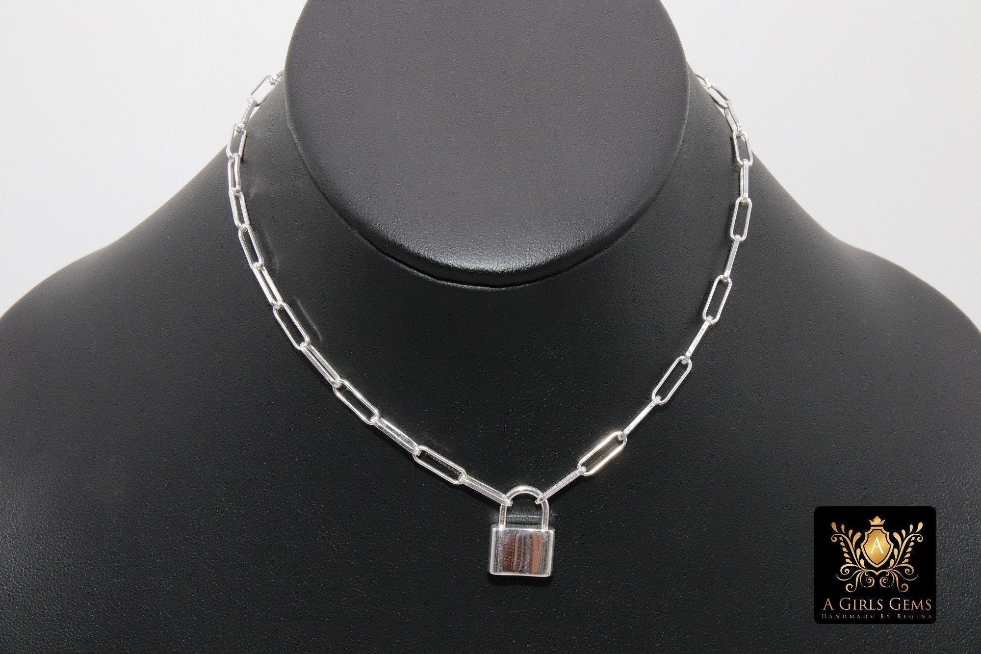 925 Sterling Silver Lock Necklace, Solid Silver Locking Clasp Elegant Submissive Discreet Day Collar, BDSM Jewelry