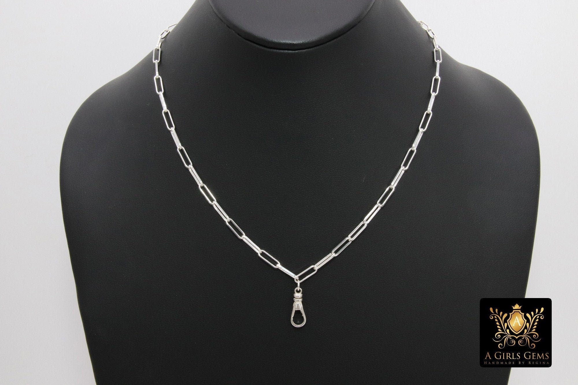 925 Sterling Silver Swivel Fob Wrap Necklace, Silver Drawn Rectangle Chain, Front Clasp Choker