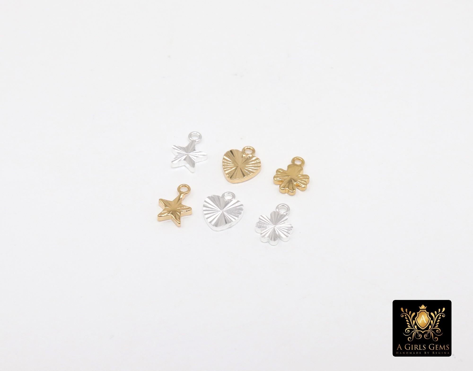 925 Sterling Silver or 14 K Gold Filled Clover, Hearts, or Star Starburst Charms