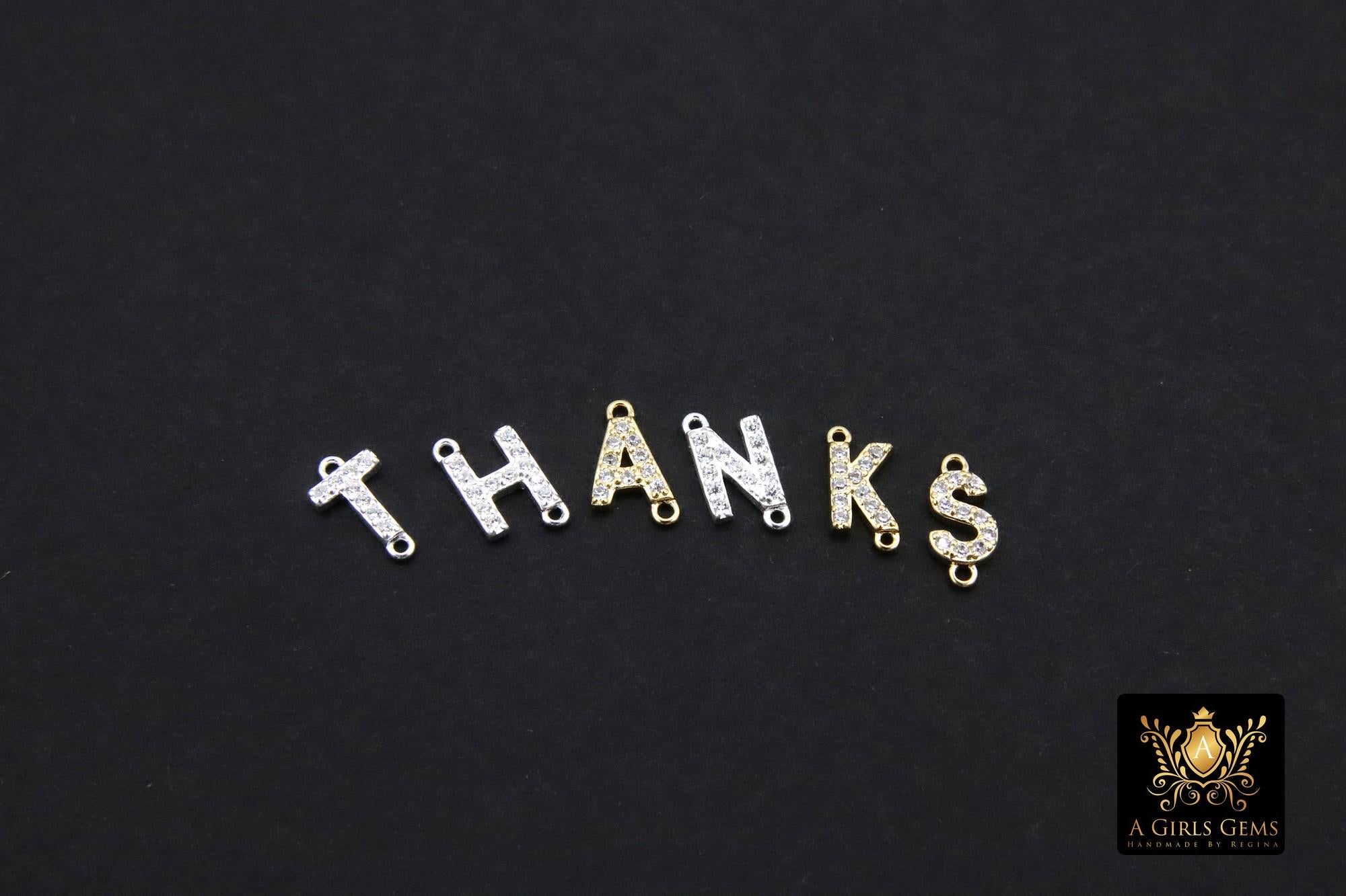 14 K Gold Filled CZ Letter Connectors, 7 mm 925 Sterling Silver Initial Links #3375, Letters