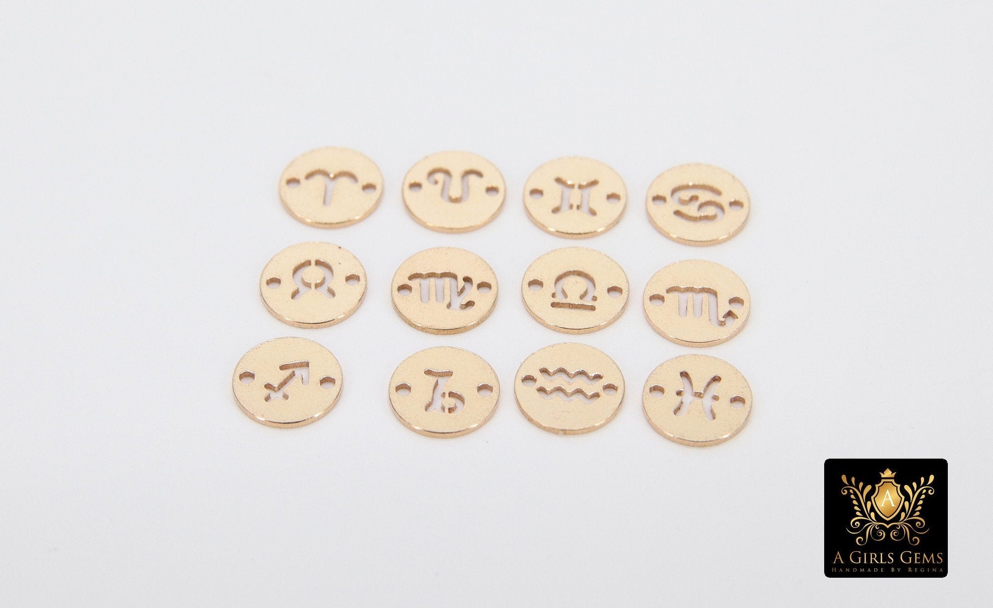 14 K Gold Filled Horoscope Connectors, 6 mm 925 Sterling Silver Zodiac Birthday Sign #3505, Round Astrological Symbol