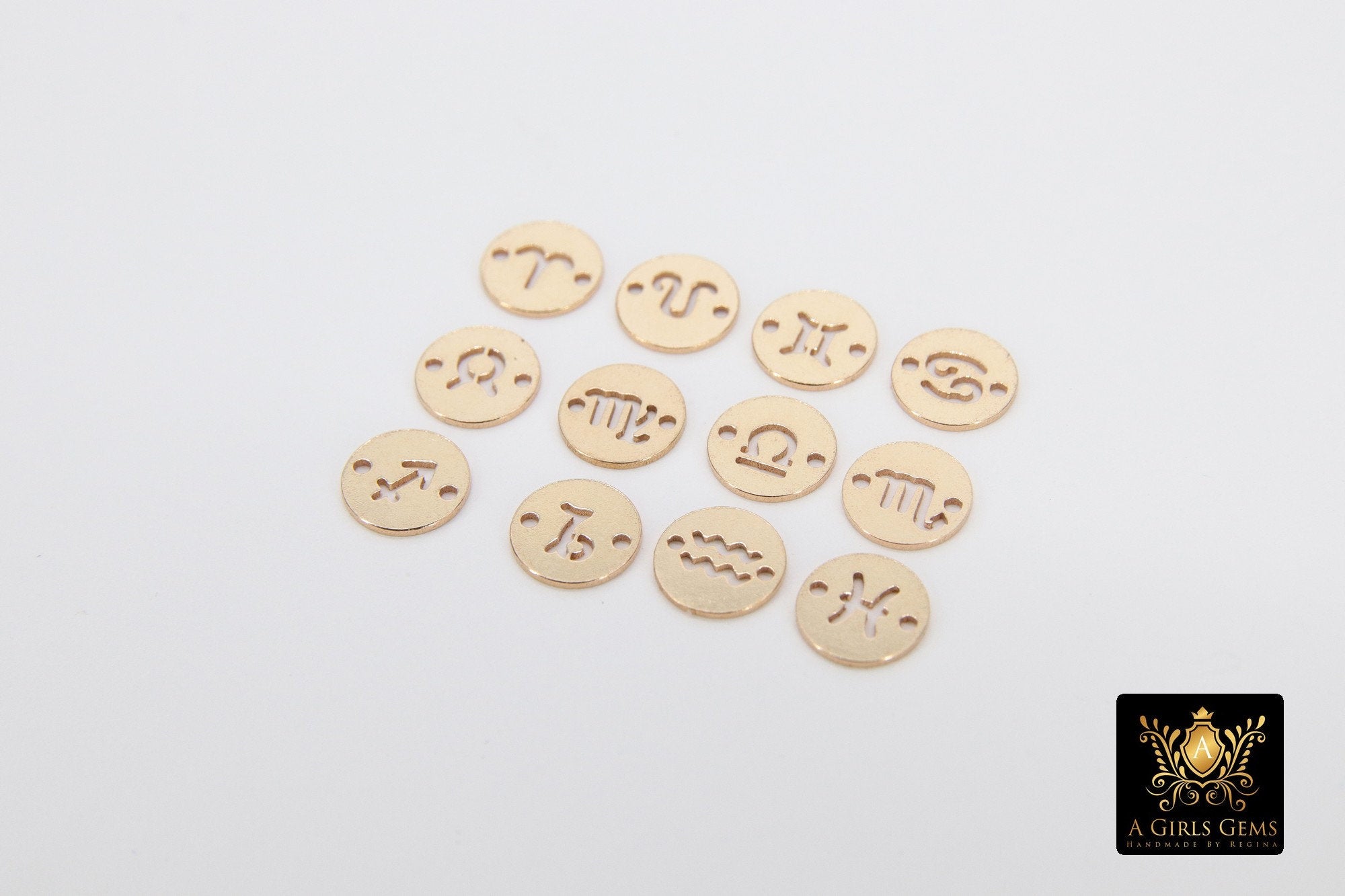925 Sterling Silver or 14 K Gold Filled Small Round Zodiac Birthday Signs, Permanent Jewelry Round Astrological Symbol.