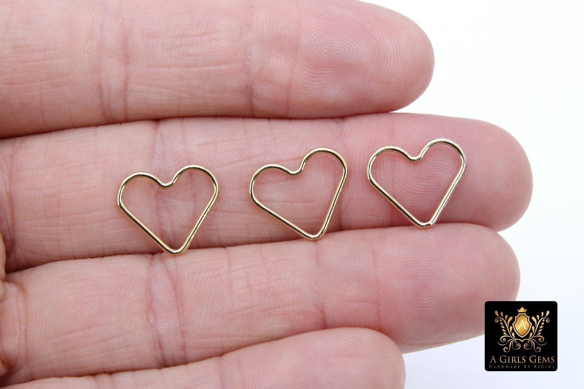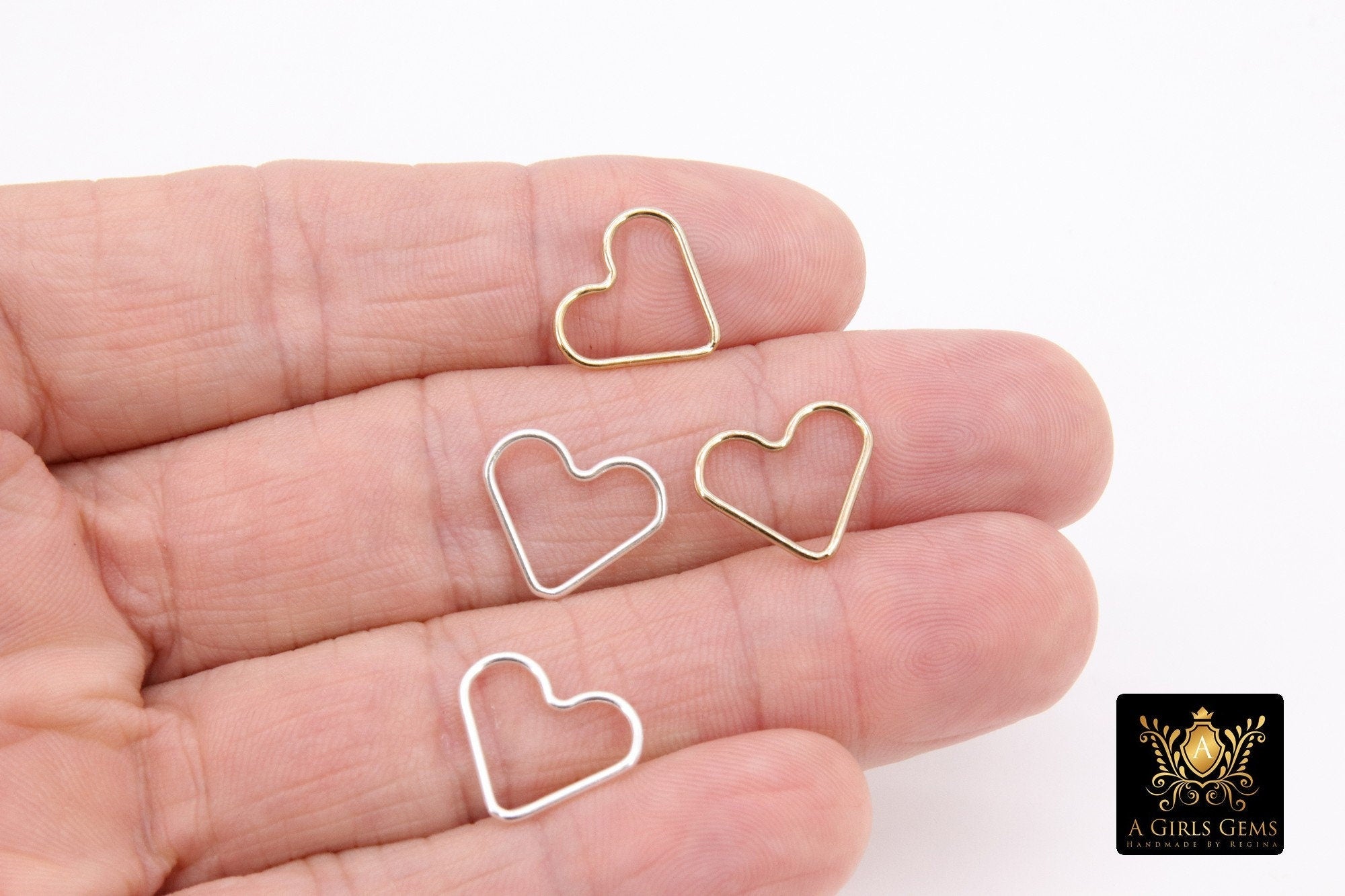 925 Sterling Silver Heart Charms, 13 mm 14 K Gold Filled Soldered Links #2201, Jewelry Rings