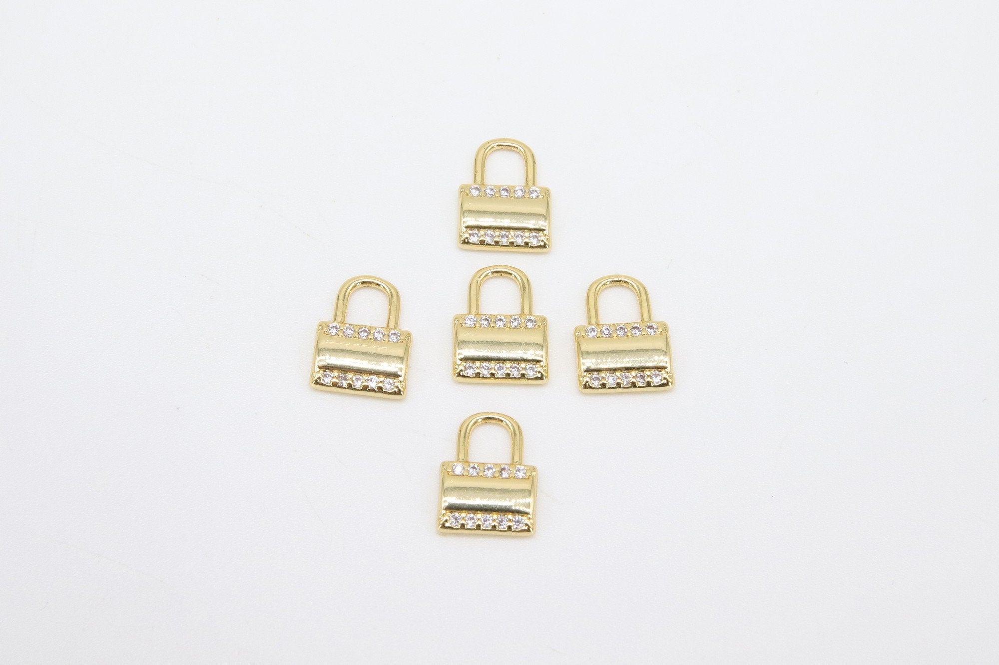 CZ Gold Mini Padlock Charms, Tiny 10 mm Lock Pendant #2609, Necklace and Bracelet Dangles
