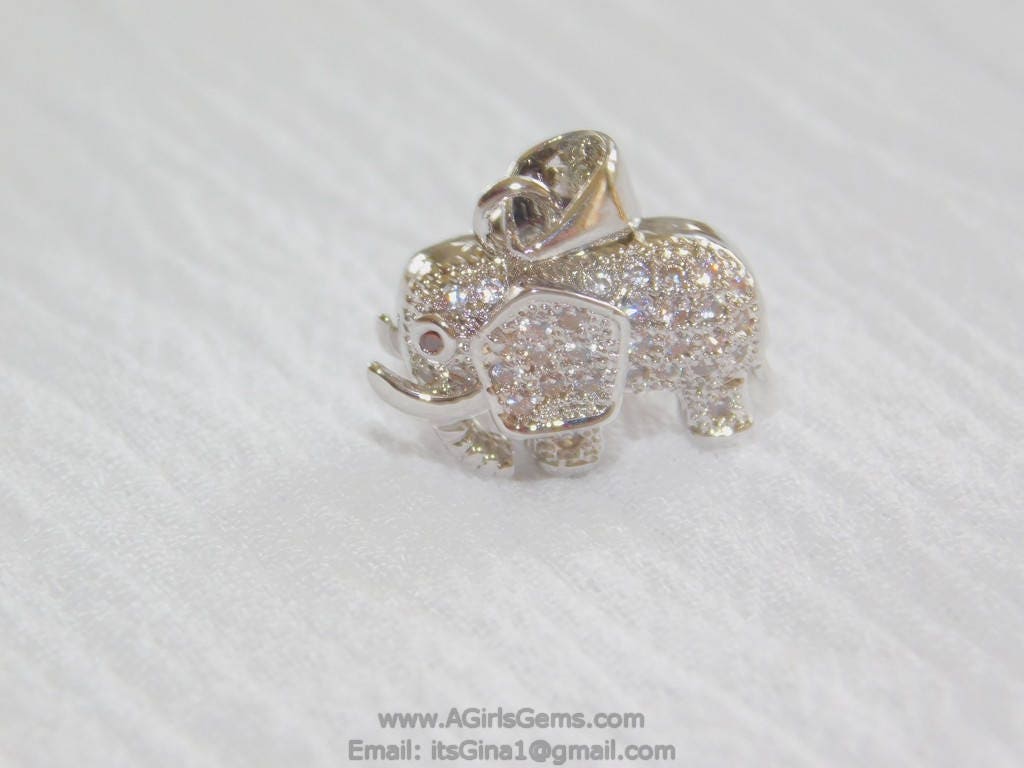 CZ Micro Pave Elephant Charms, Silver Cz Animal Pendant 15 x 13 mm Yoga charms, Lucky Elephant Pendant Dangle