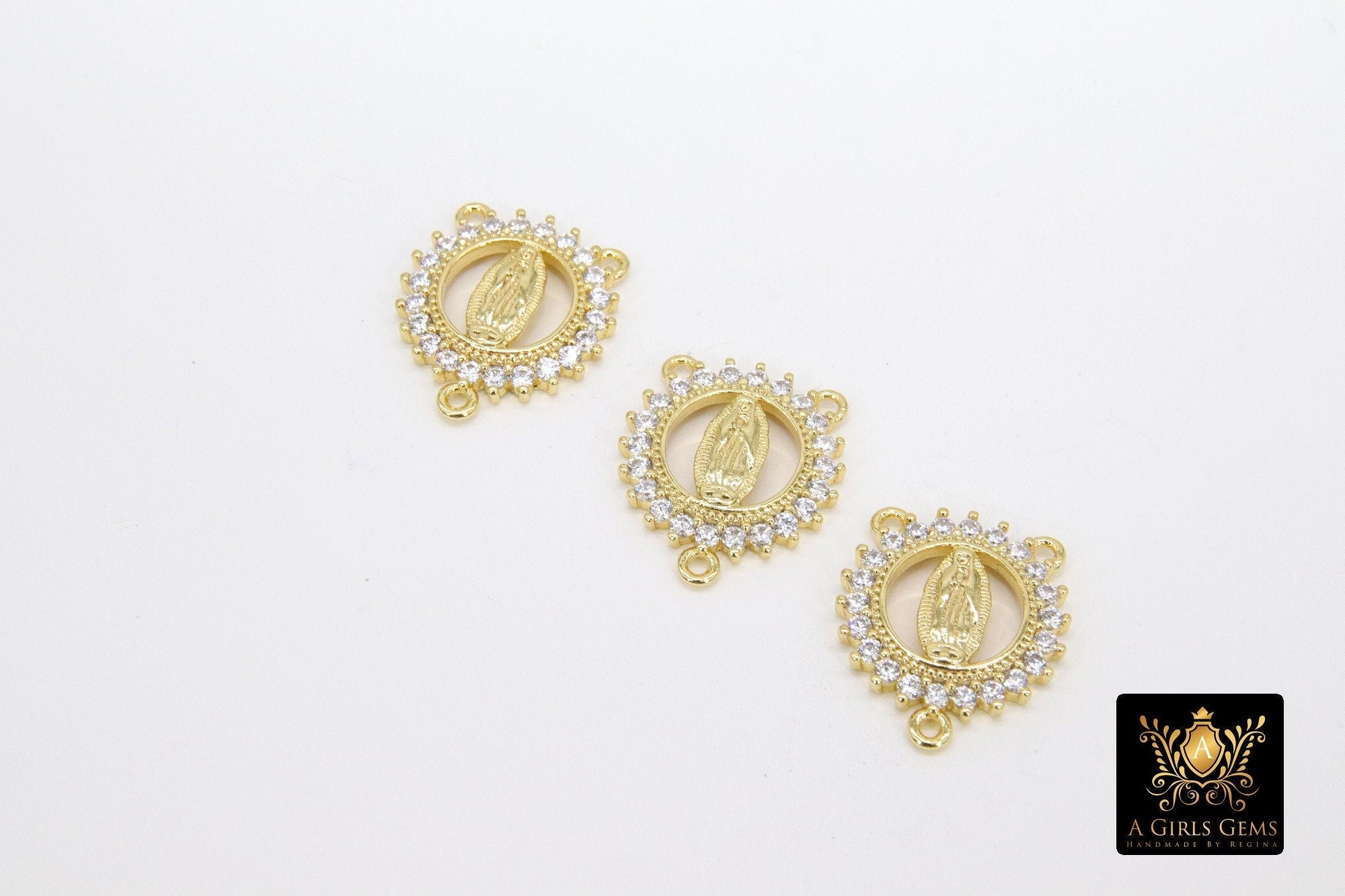 CZ Pave Mary Connectors, Gold Cross Rosary Centers #561, St. Benito Charm Links