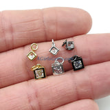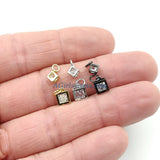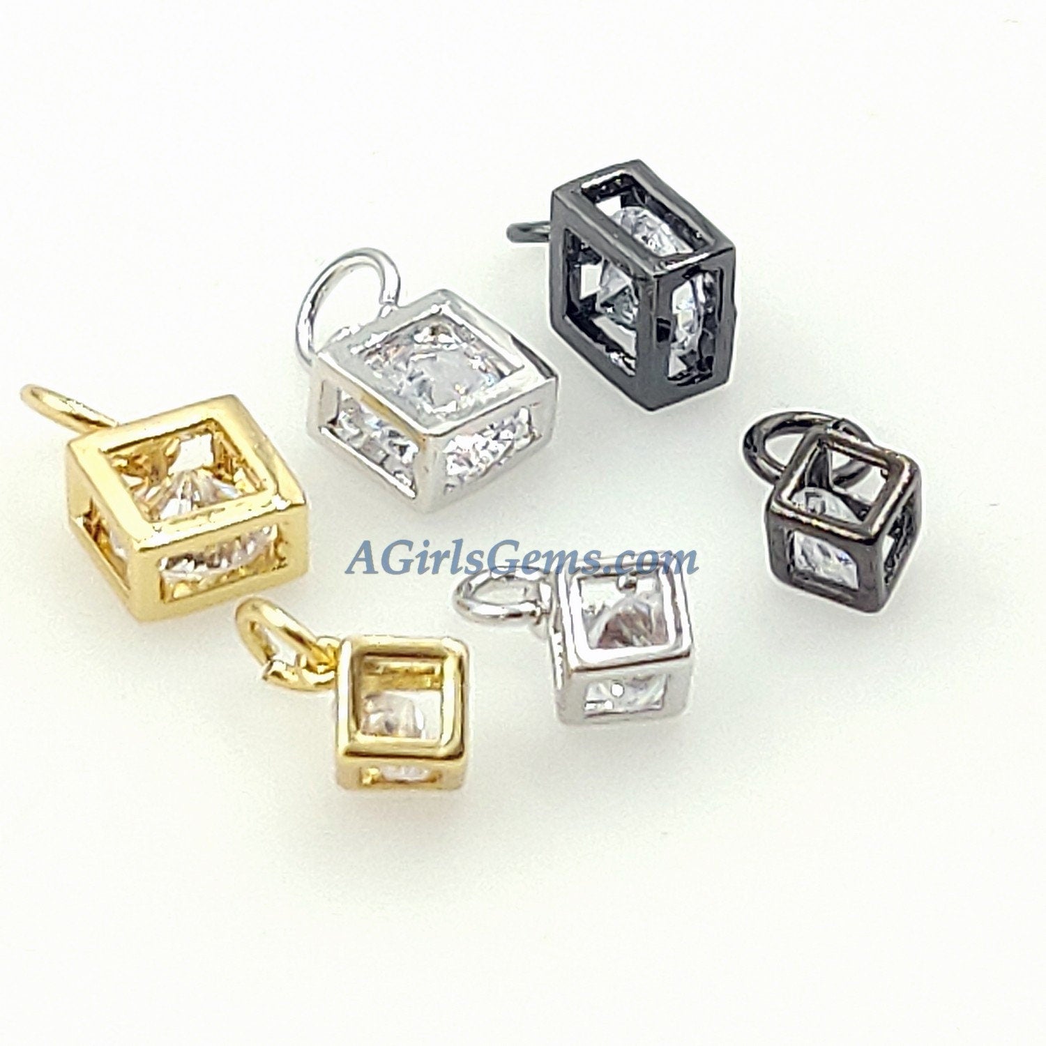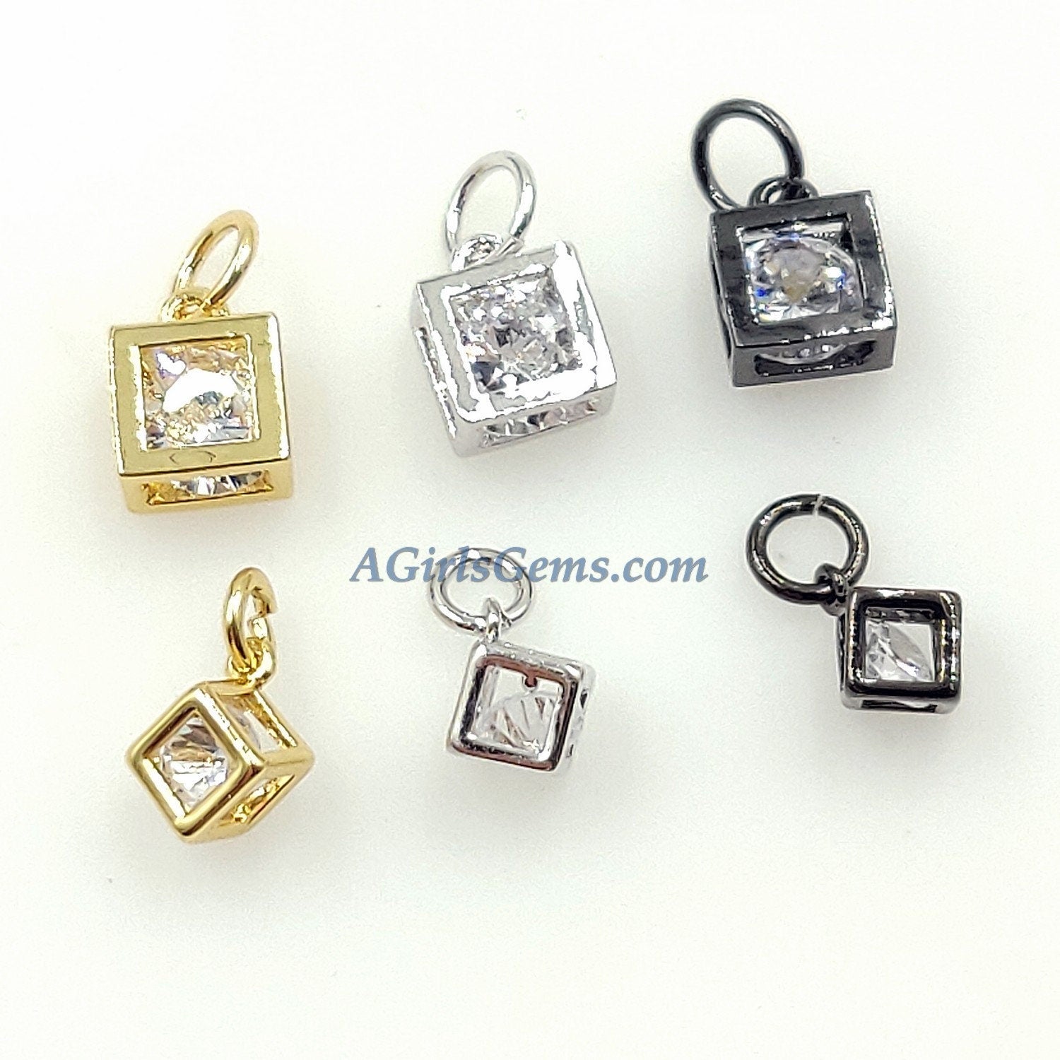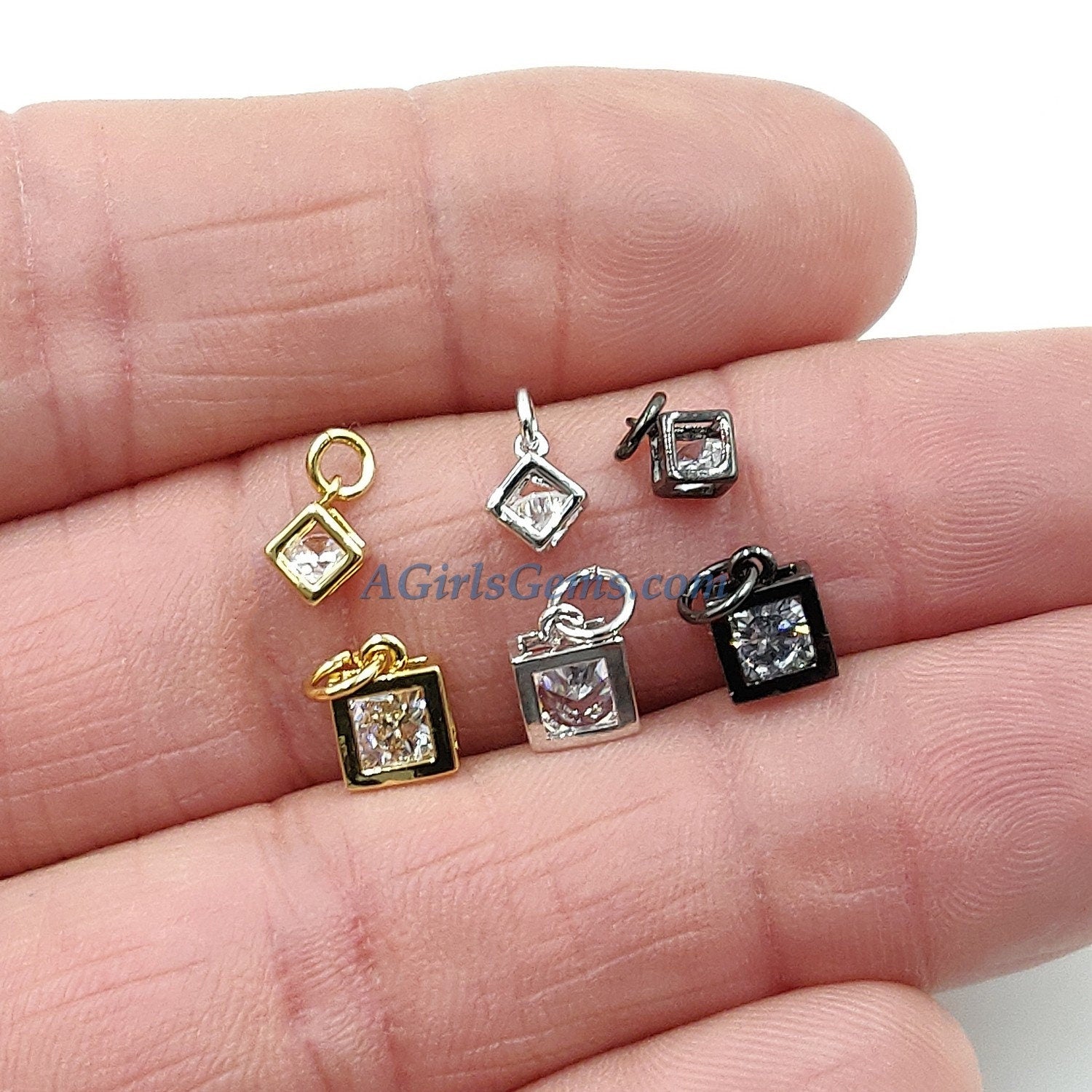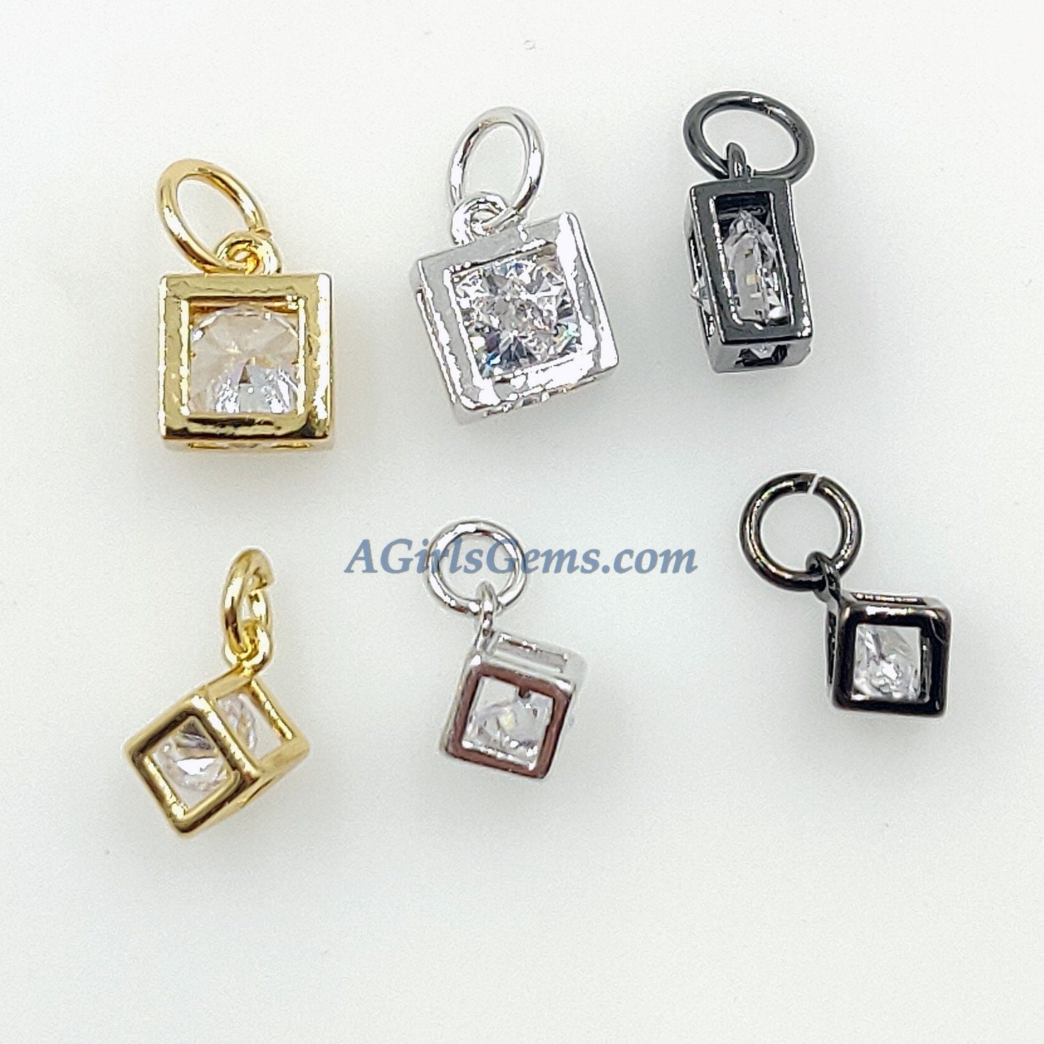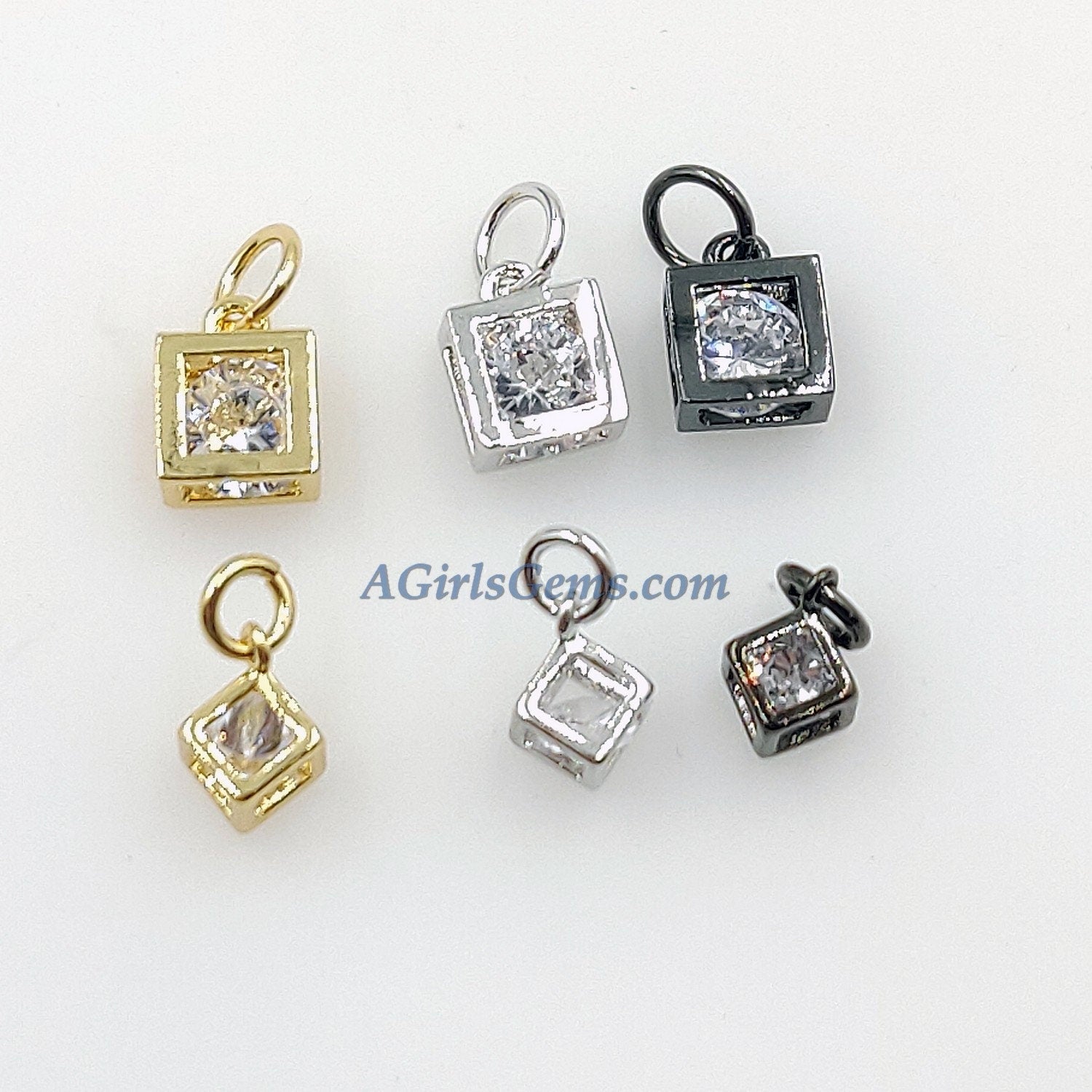CZ Square Cube Charms, 3 Pcs Genuine 5 x 5 mm/6 x 8 mm Floating Cubic Zircon Minimalist Dangles, Gold/Silver/Black Tiny Necklace/Bracelet