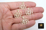 Gold Camellia Charms, Genuine Gold over 925 Silver Flower Charms #864, Rose Necklace Pendants