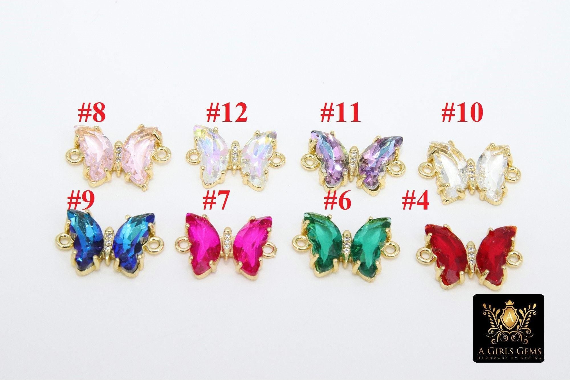 Gold CZ Butterfly Connectors, 12 mm Cubic Zirconia Small Crystal Butterflies #2670, High Quality Huggie Charms in 13 Colors