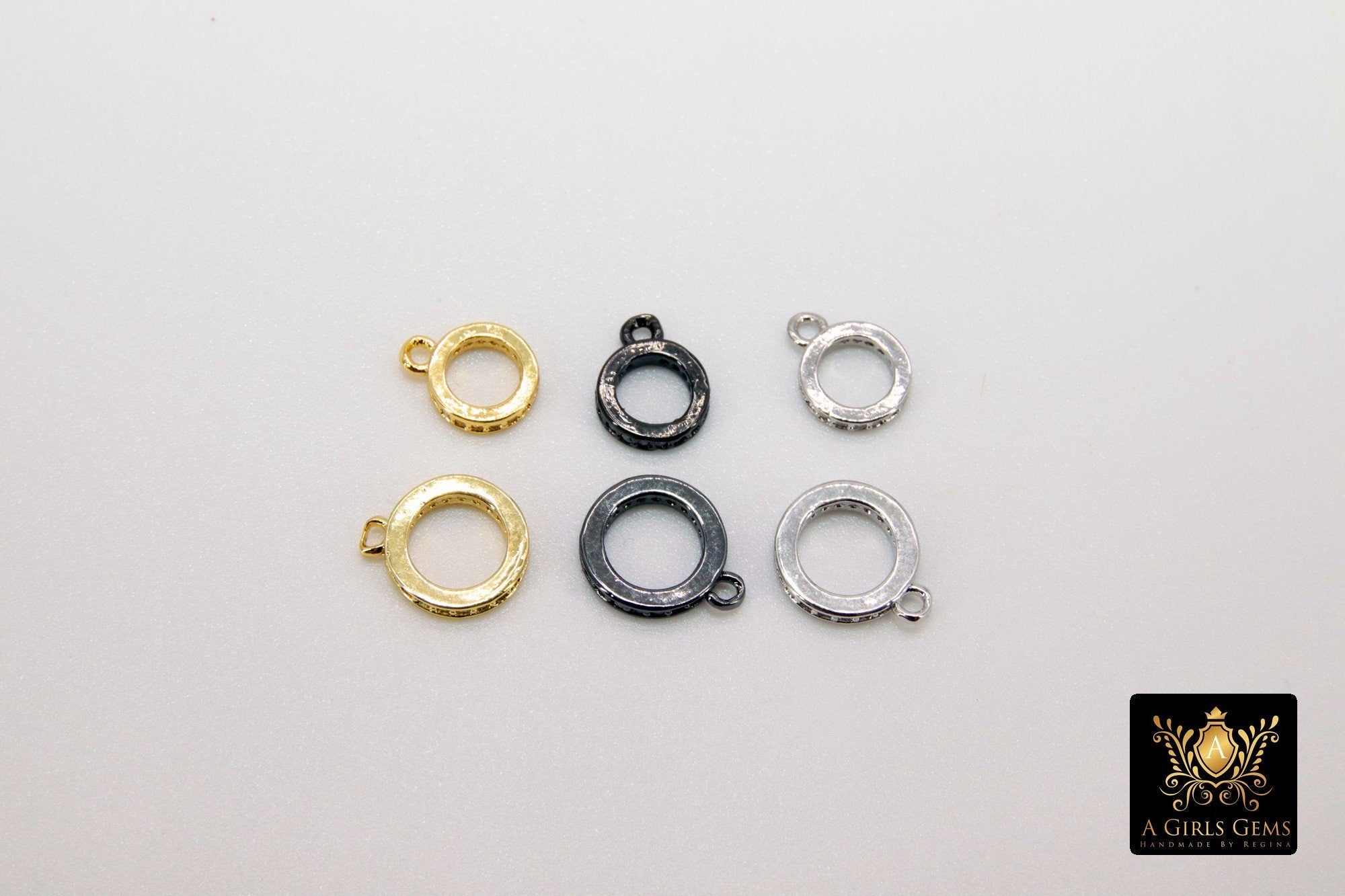 2 Pieces - Micro Pave CZ Charm Holder Connector Rings in 9.50 x 12 mm or 8 x 10 mm