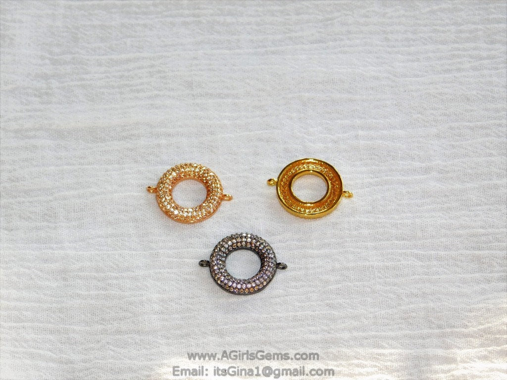 Round Charm Connectors, Round Disc Charms - 16 x 20 mm, CZ Micro Pave Circle Links, 18 K Rose/Gold/Silver/Black Rhodium Plated