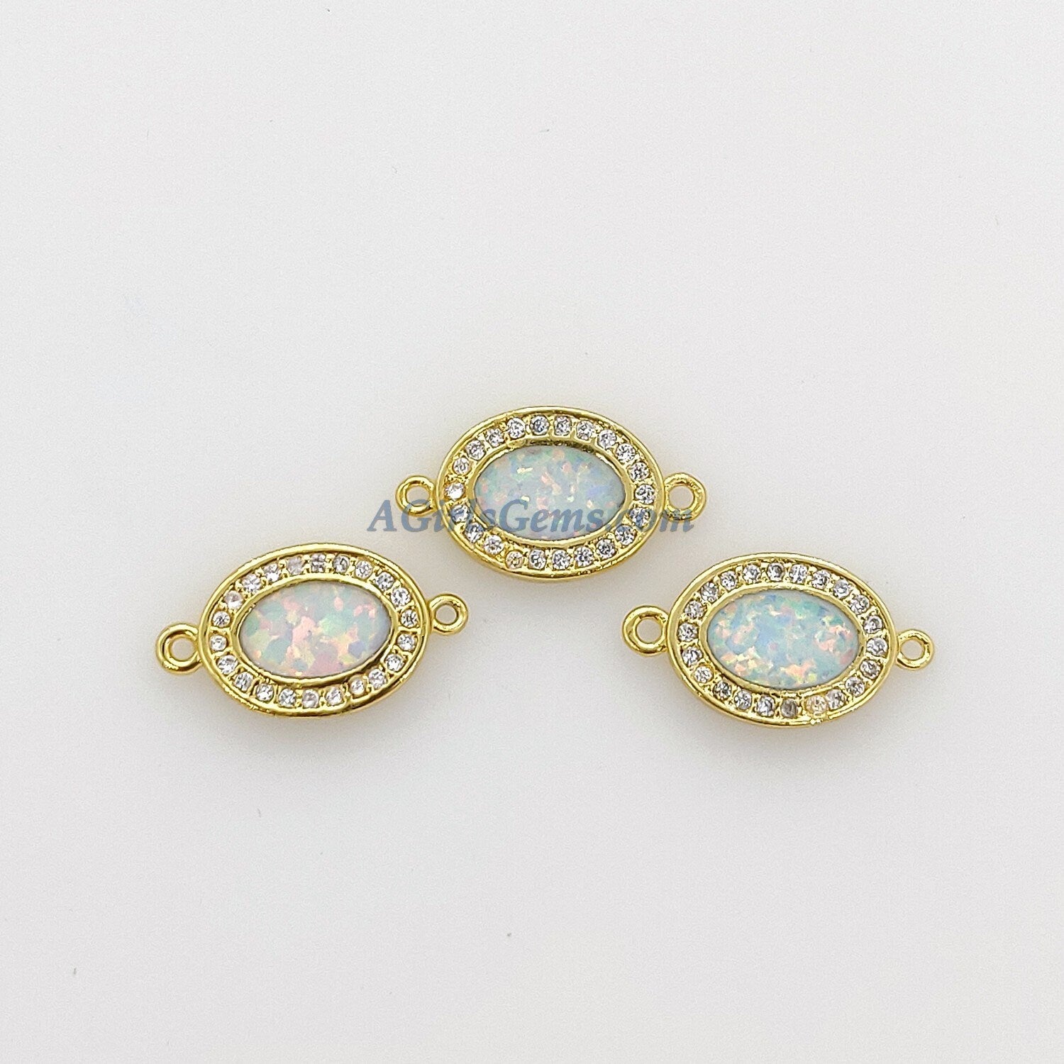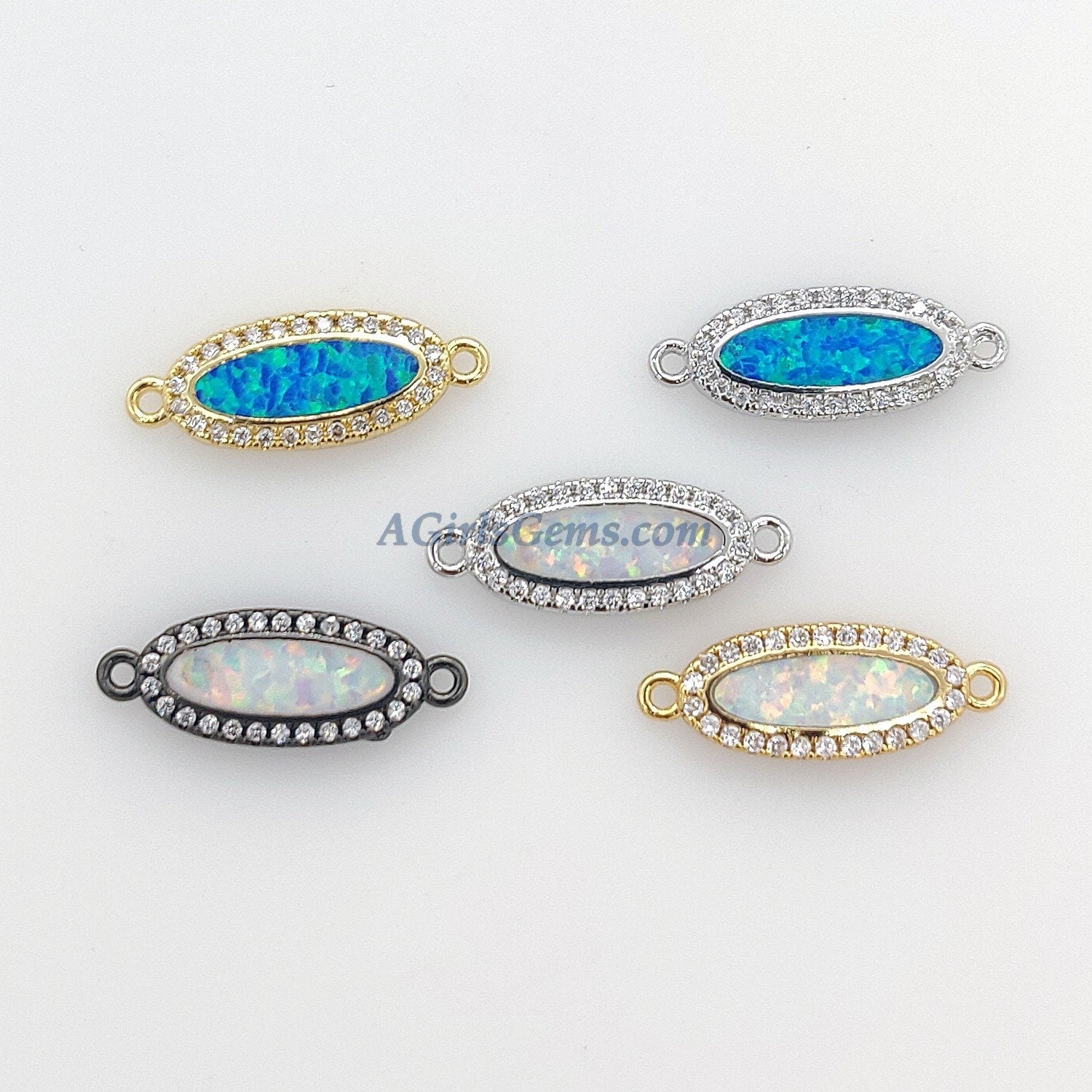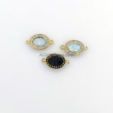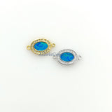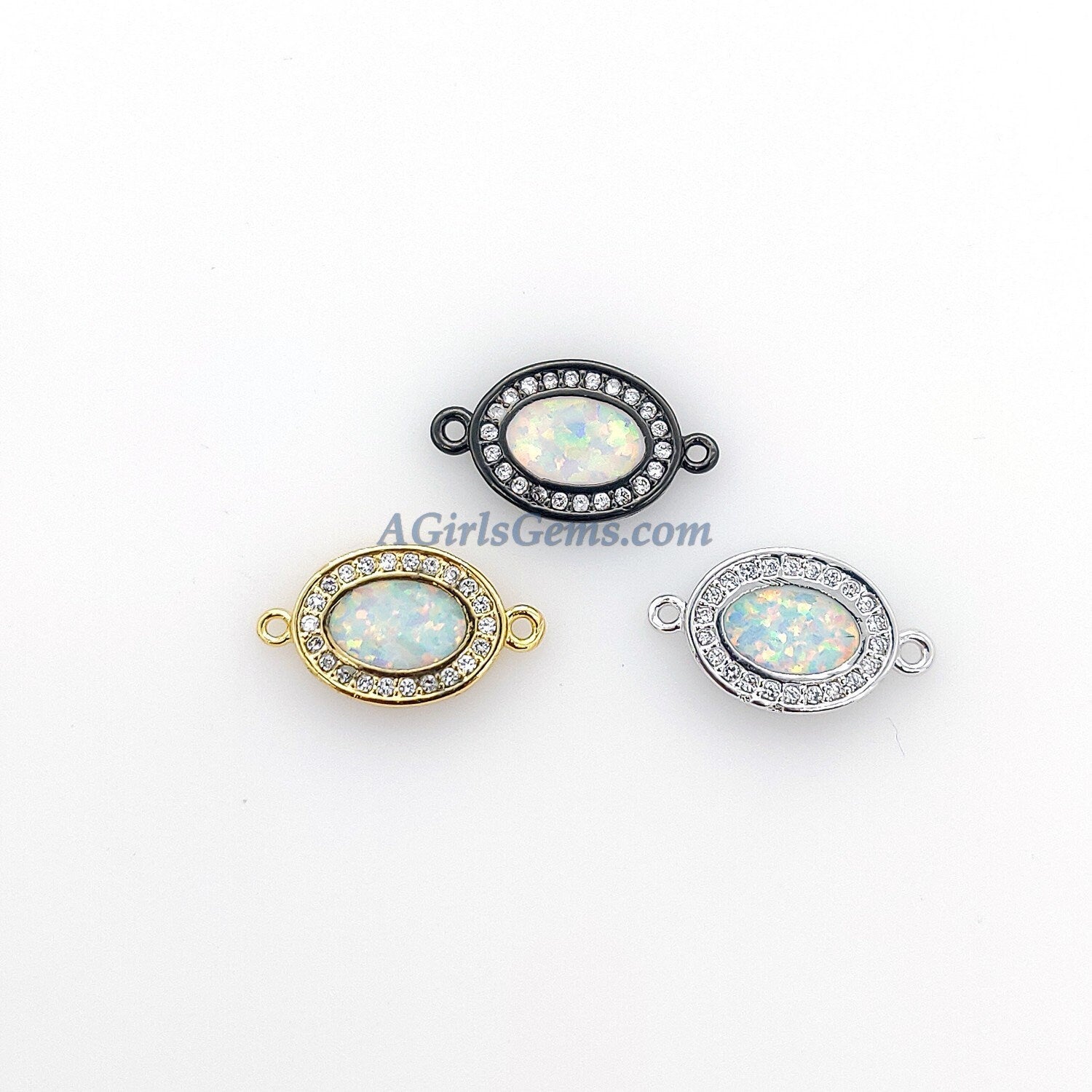 White Opal CZ Pave Oval Connectors, Gold, Silver, Black Blue Opal Links #395