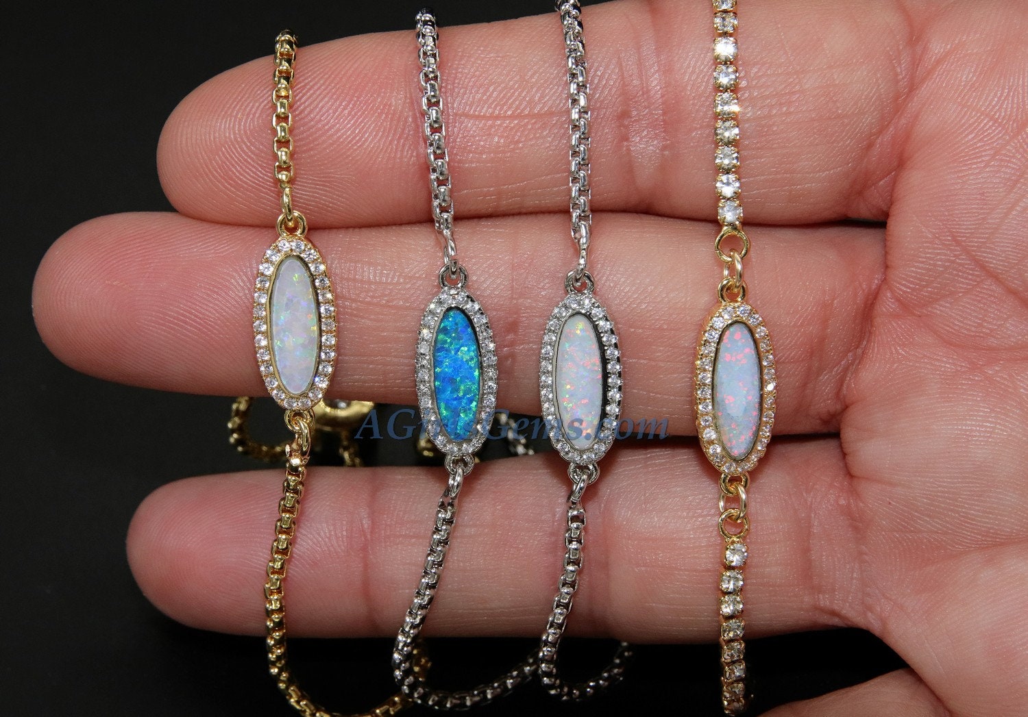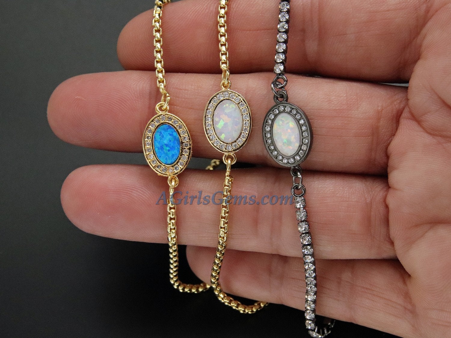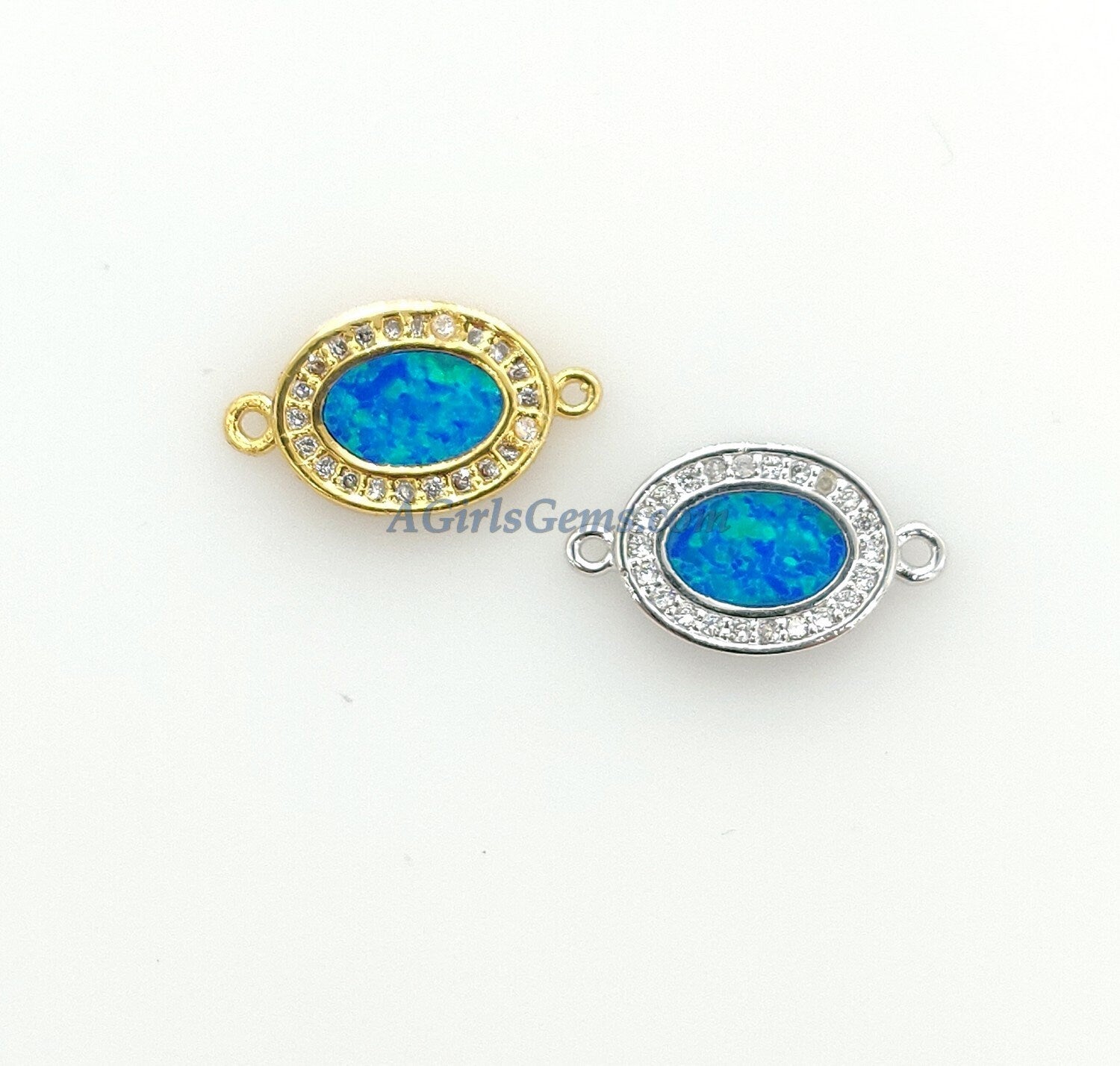 White Opal CZ Pave Oval Connectors, Gold, Silver, Black Blue Opal Links #395