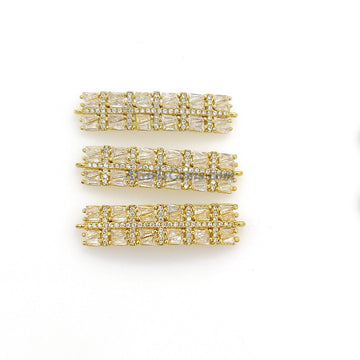 CZ Micro Pave Long Bar Connectors, Dainty Gold Plated Bracelet Links, Baguettes