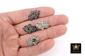 Hand Hamsa Protection Connectors, CZ Micro Pave Hand of Fatima #360, Silver or Black Links