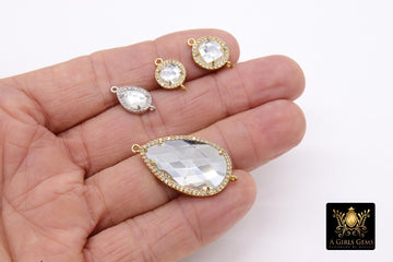 CZ Bezel Mirror Charm Connectors, 2 Pcs Gold Plated Links #176, Silver Connector for Link Chain Loop for Earrings Necklace