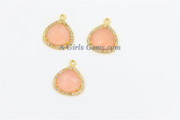 Pink Opal Charm, Cz charms for Necklaces or Earrings - Opal Cubic Zirconia for DIY Earrings - Gemstone Pendant Size: 19 x 22 mm Conversion in MM: US Dime 18 mm; US Nickel is 21.5 mm; US Quarter is 24...