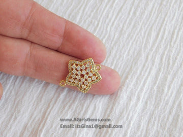 CZ Star Connectors, 3 Pcs Tiny Starburst Shape #529, Lariat Drop Center and Mini Star Charms
