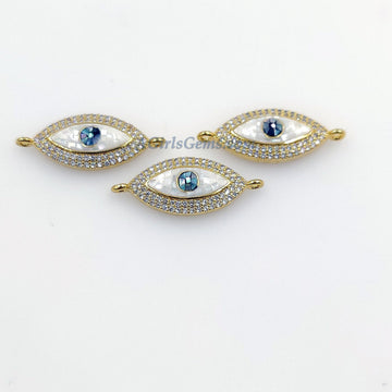 Evil Eye Connector, CZ Micro Pave Gold Shell White Evil Eye Protection Jewelry, Mother of Pearl Evil Eye Charms