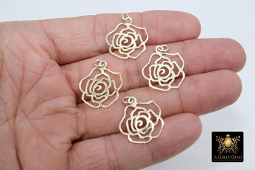 Gold Camellia Charms, Genuine Gold over 925 Silver Flower Charms #864, Rose Necklace Pendants