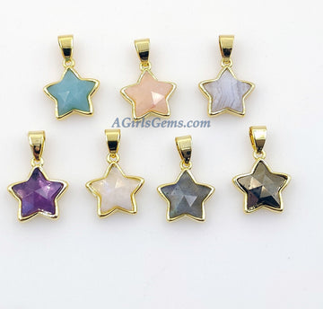 Star Gemstone Charm Pendants, 24 K Gold Filled Amethyst, Pyrite, Labradorite, Moonstone, Amazonite, White Lace Agate, Rose Quartz Bezels Conversion in MM: US Dime 18 mm; US Nickel is 21.5 mm; US Quarter is 24 mm; 1 inch = 25.4...