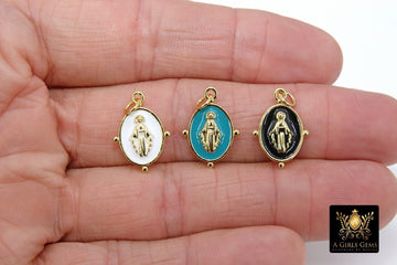 Gold Jesus Virgin Mary Charms, Oval Enamel Discs #2732, Colors in Black White