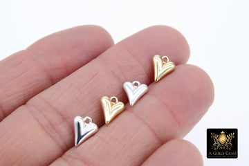 Puffy Gold Heart Charms, 8 x 10 mm Silver Heart Charms #3390, Love Gifts for Mom #3391