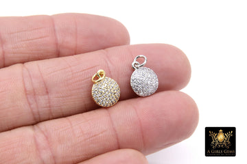 CZ Pave Gold Round Disc Charms, Silver Small Coin Disc #589, 10 mm Black Tiny Round Circle Charm