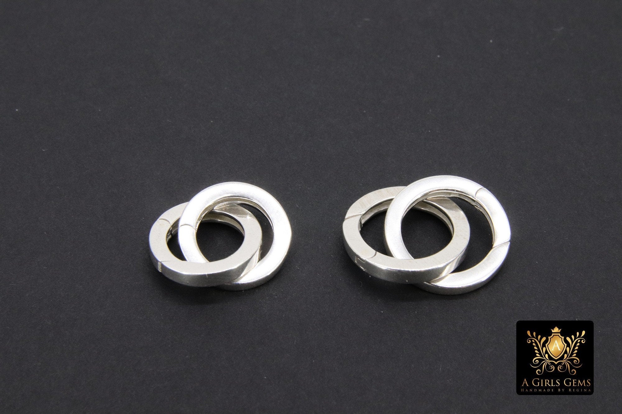 925 Sterling Silver Round Spring Clasp, Round Shape Jewelry Push Clasps with loop or without