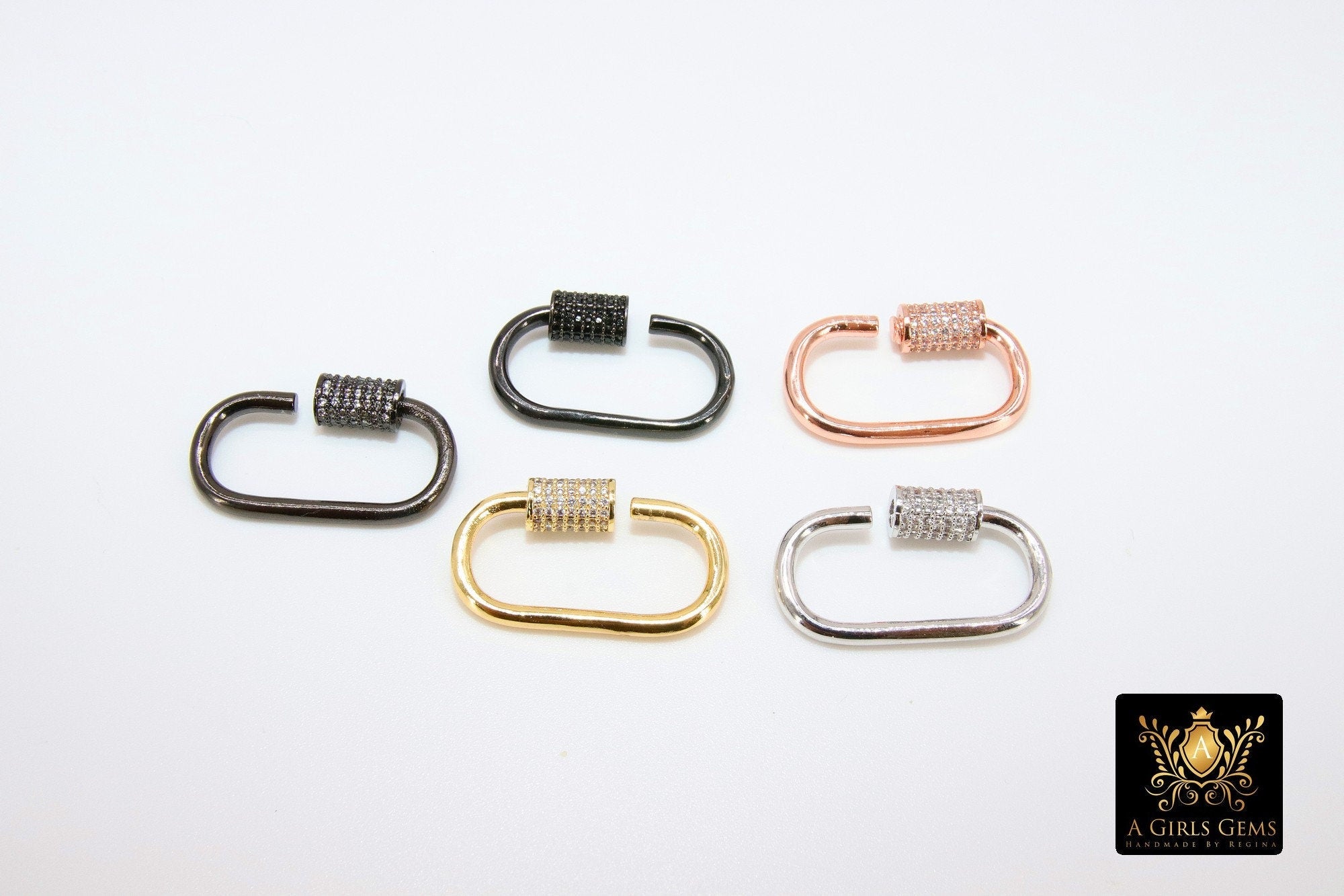 CZ Micro Pave Oval Screw Clasps, Large Connector Claw Silver #2320, Black