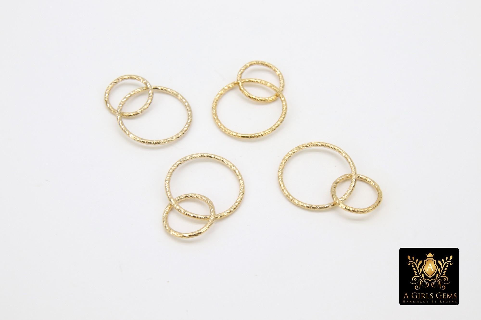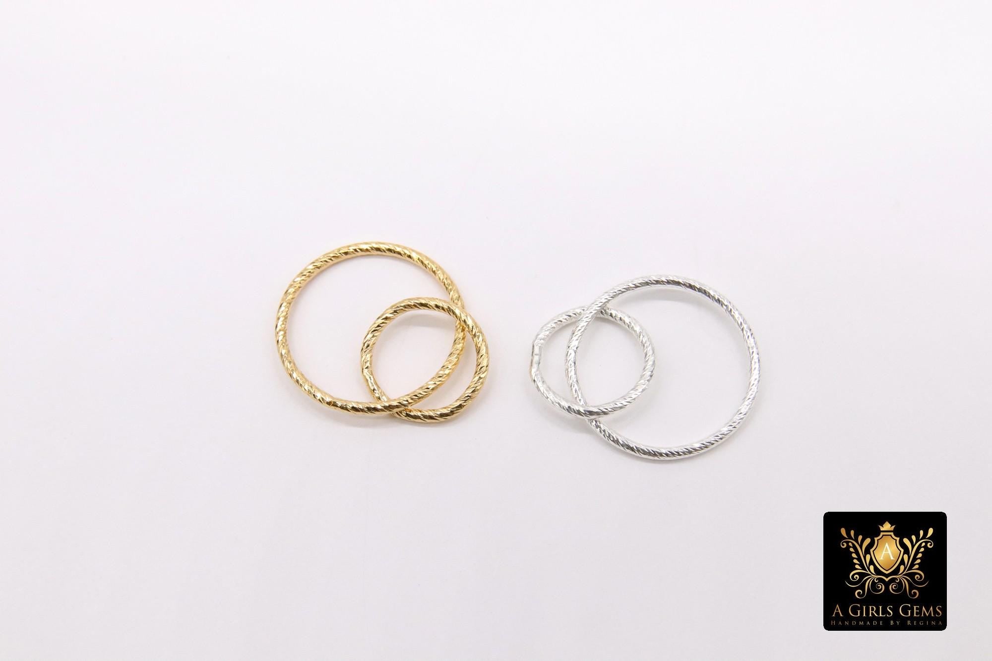 14 K Gold Filled Two Circle Link, 10 and 15 mm 925 Sterling Silver Hammered Interlocking Ring # 2551, Textured Double Infinity Soldered Ring