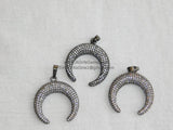 Micro Pave CZ Double Horn Moon Pendant, Cubic Zirconia Cow Horn CZ Gunmetal Black Plated Clear CZ Pendant AGGBG52
