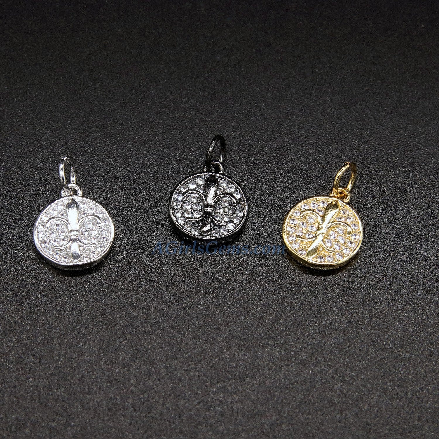 CZ Micro Pave Fleur De Lis Charm Pendant
