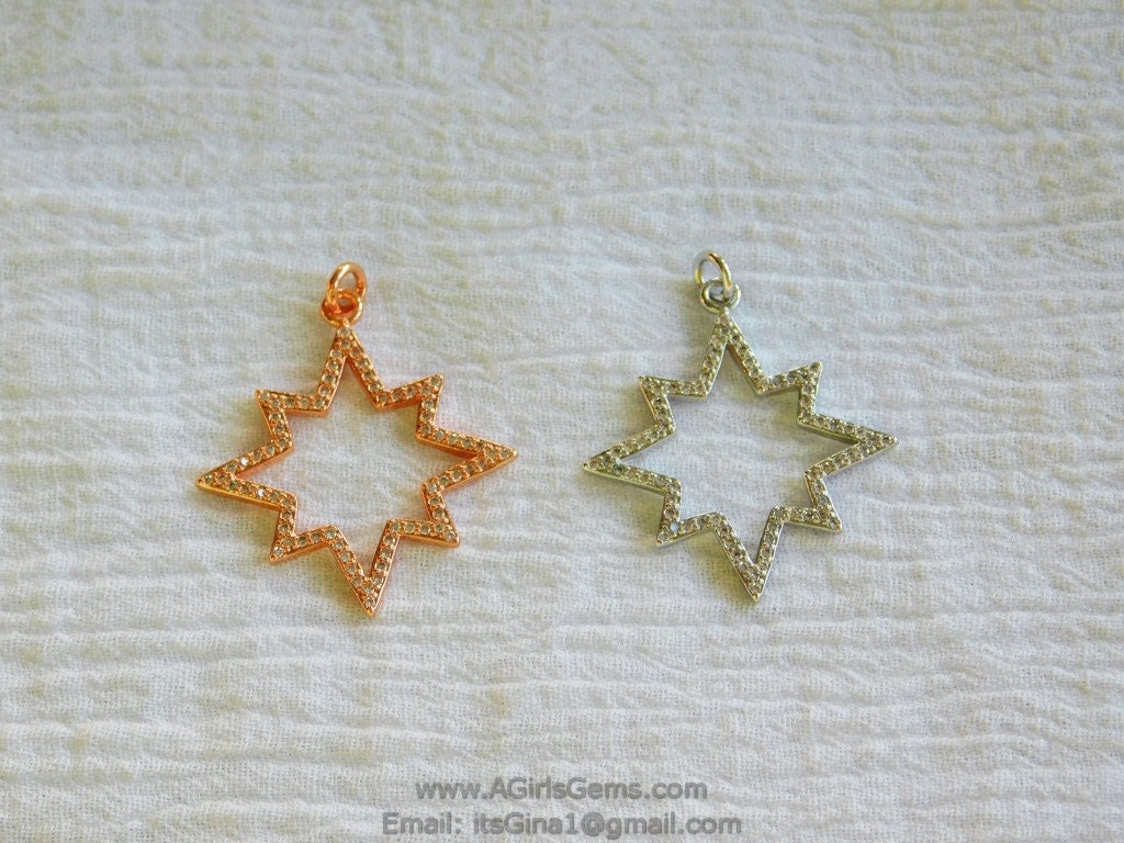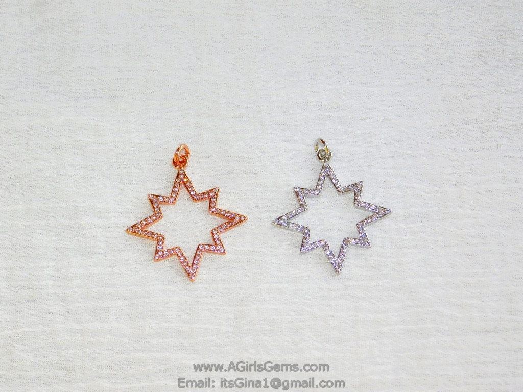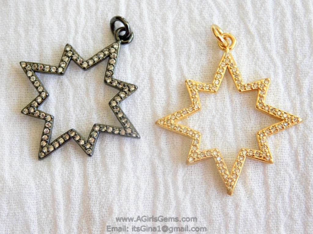 CZ Micro Pave Star Charms, CZ Starburst Pendants, Star Cubic Zirconia Stars in Gold #204