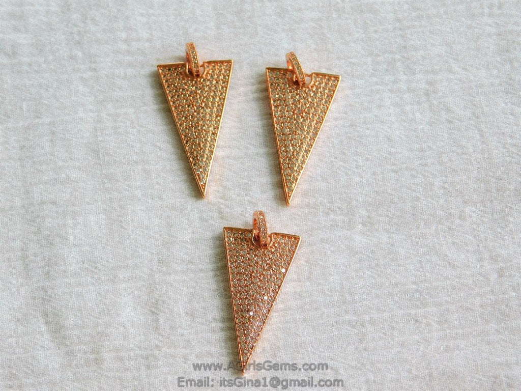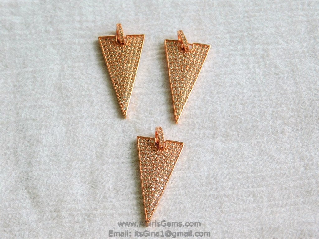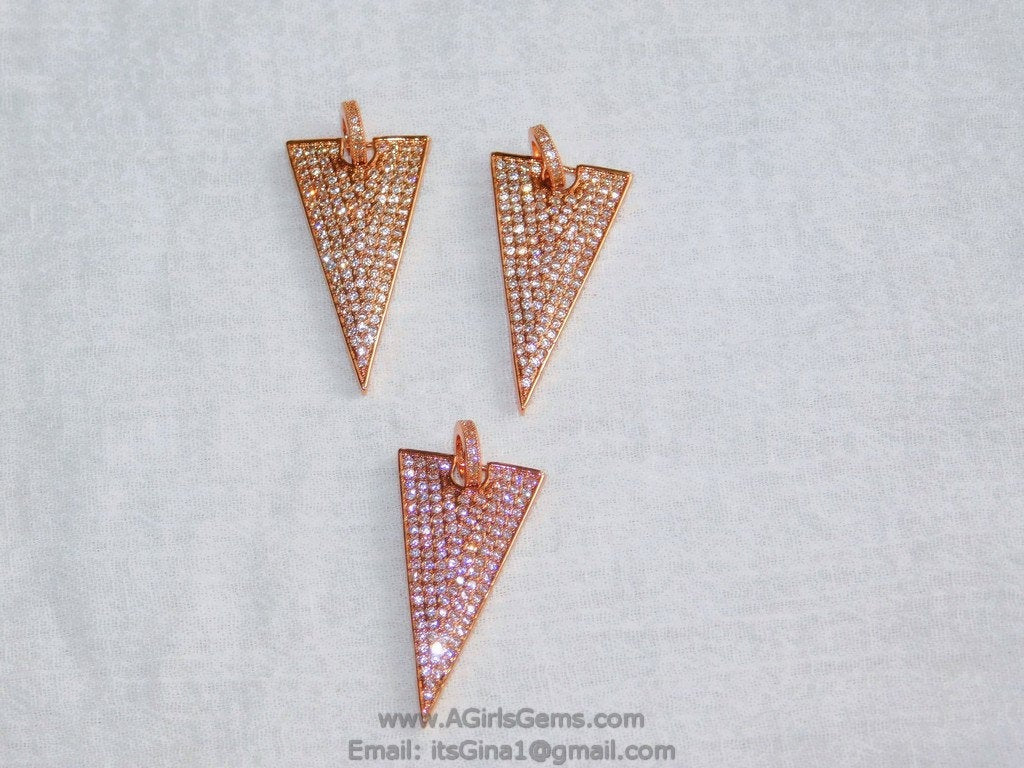 CZ Rose Gold Plated CZ Triangle Pave Bead Pendant Cubic Zirconia Large Size Triangle Link Connector Pendant for Bracelet Necklace.