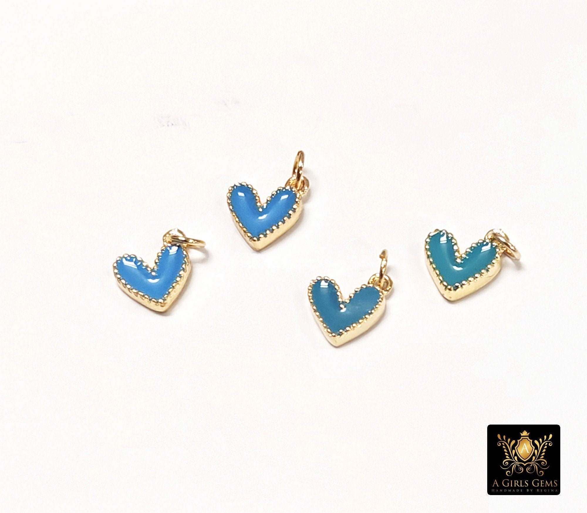 Tiny Gold Enamel Heart Charms, Turquoise Blue Black Red White Heart Charms # 84, Mini Jewelry Charms 8 x 9 mm