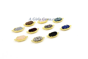 Gold plated Black Druzy Oval Pendant Connector Bead, 10 x 21 mm Black Gray Druzy Charms, Natural Druzy for DIY Jewelry  The back is a very pretty gold plated filigree. All colors vary and we can't guarantee any will match...