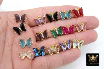 Gold CZ Crystal Butterfly Charms, Cubic Zirconia Small Butterflies #2670, High Quality Huggie Charms in 13 Colors
