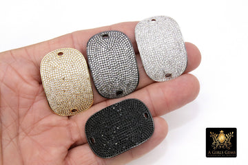 CZ Micro Pave Bar Charm Connector, Long Bracelet Bar 18 k Rose Gold/Silver/Gold/Black Rhodium Plated Curved 2 Loop Bar Jewelry Findings **SPECIFICATIONS** Measurements Approximately: 13 mm x 29 mm Holes: 1.5 mm Stones: Cubic Zirconia Quantity of Items: 1 piece...