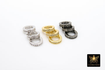 CZ Pave Round Gold Ring Charm, 9 mm Spacer Cubic Zirconia Beads, Connector Bail Rings #2545, Silver, Black, Gold Large Hole Pandora Dangle