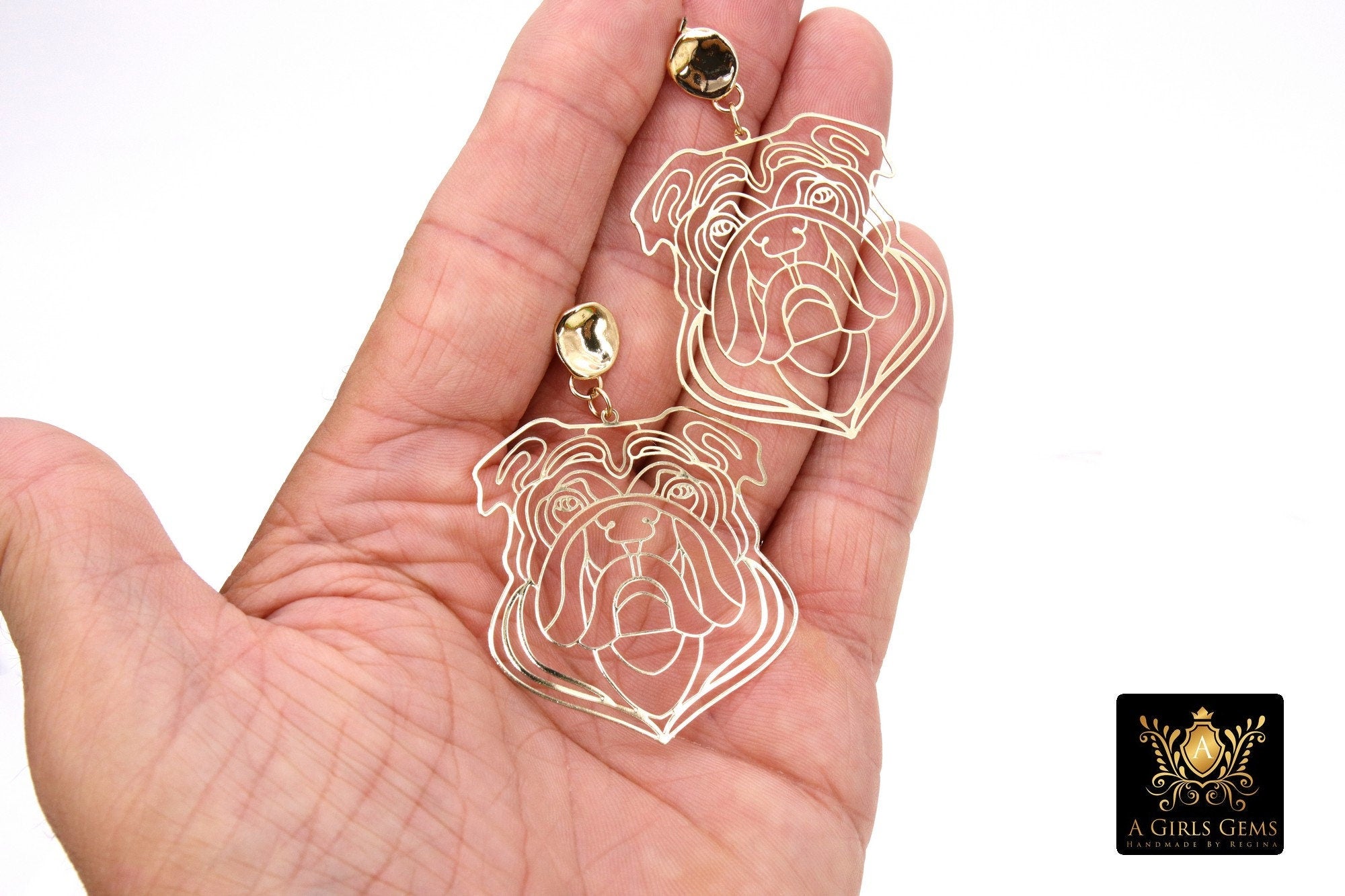 Gold Bulldog Earring, Round Wavy Stud Gold Georgia Bulldogs AG# 2405, Animal Head Charms