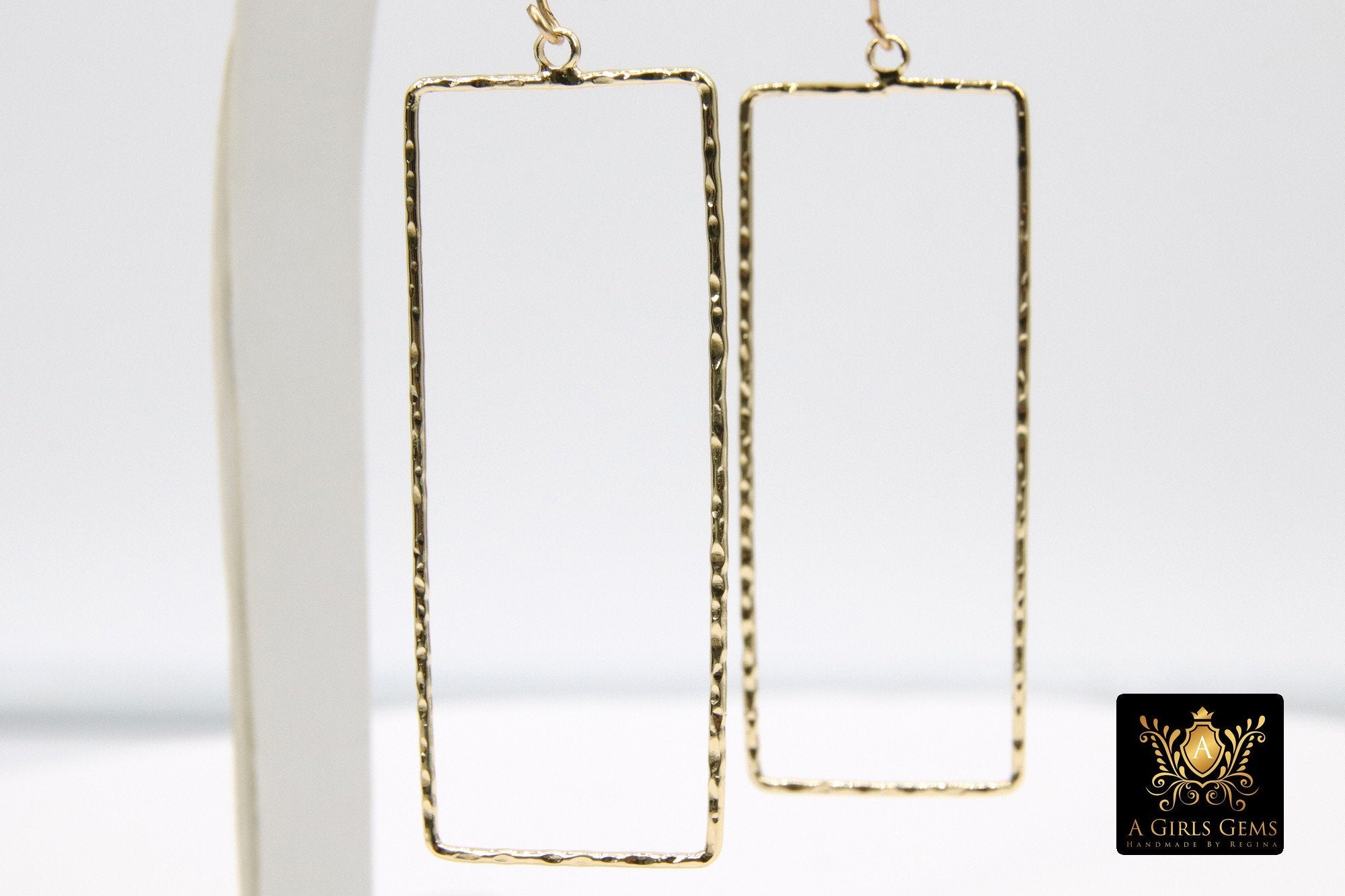 Gold Rectangle Hoop Ear Rings, 20 x 53 mm Rectangle Shaped Gold Charms AG #3332, High Quality Long Rectangles