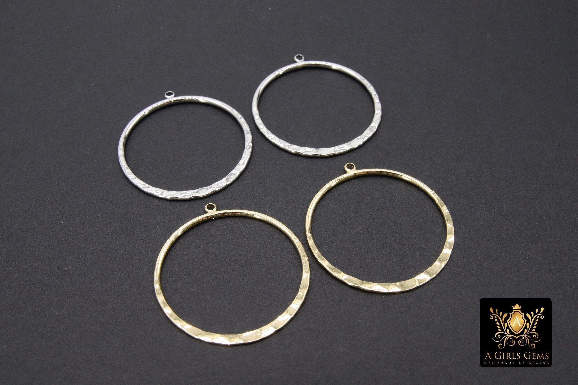 Textured Silver Round Hoop Ear Rings, 35 mm Glittery Gold Charms #2094, Hammered Gold Wire Hoops