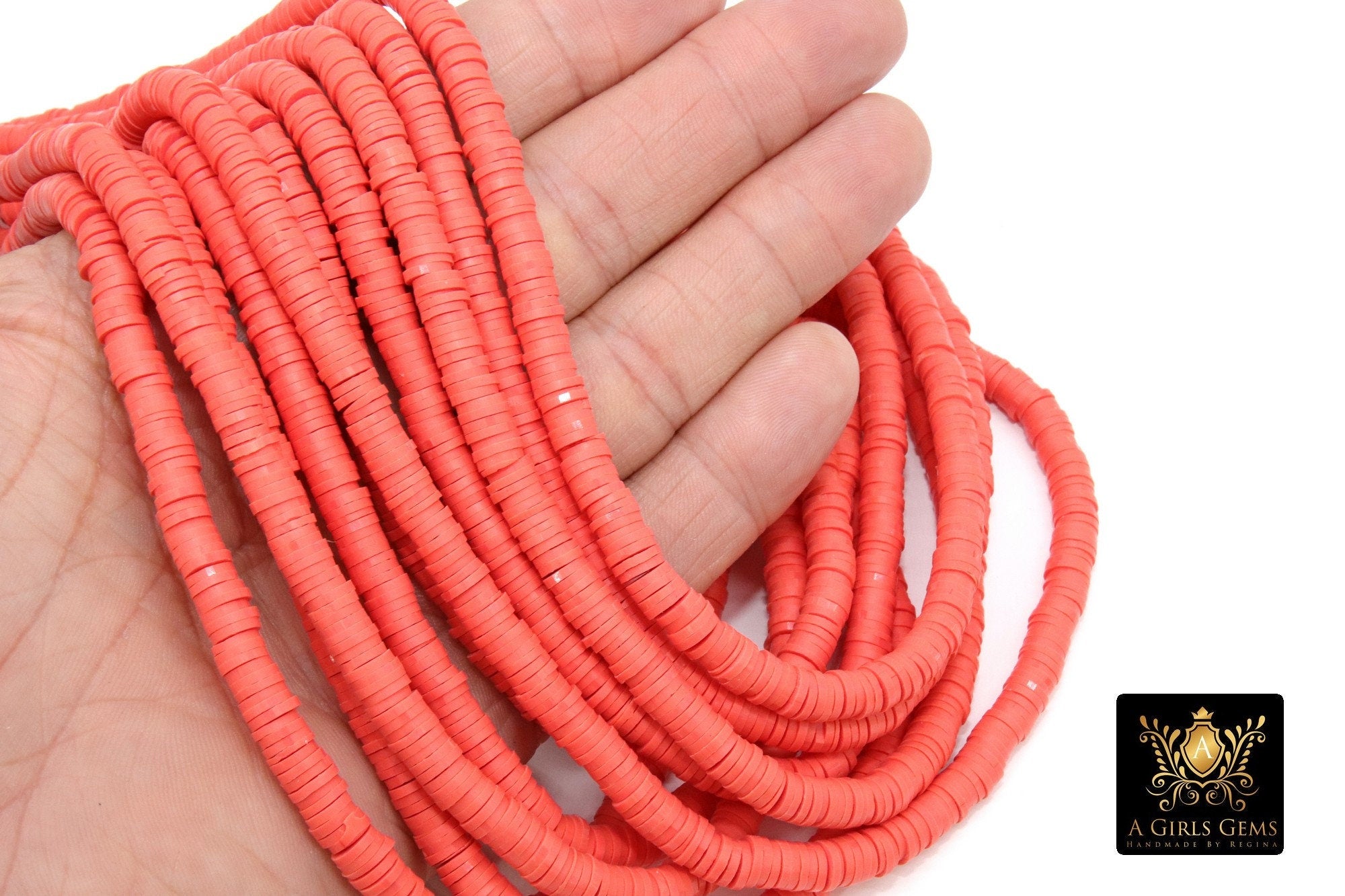 2 Strands 6 mm Clay Flat Beads, Dark Salmon Pink Heishi beads in Polymer Clay Disc CB #129, Light Red Rondelle