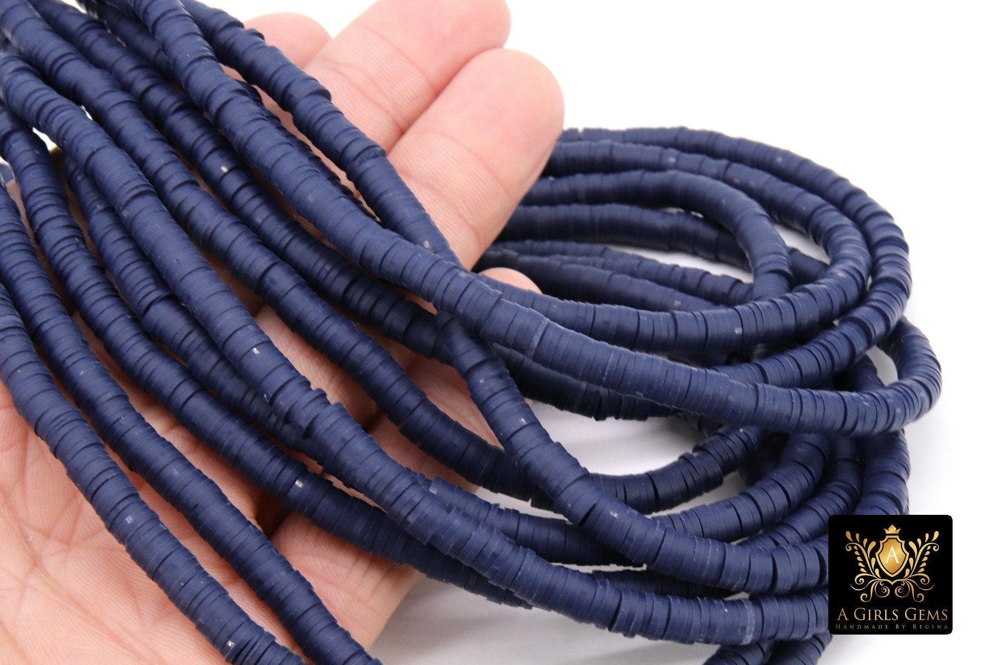 2 Strands 6 mm Clay Flat Beads, Navy Blue Heishi beads in Polymer Clay Disc CB# 214, Denim Blue Rondelle
