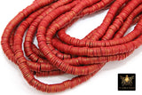 2 Strands 6 mm Clay Flat Beads, Red and Gold Heishi beads in Polymer Clay Disc CB #136, Blood Red Rondelle Multi Color