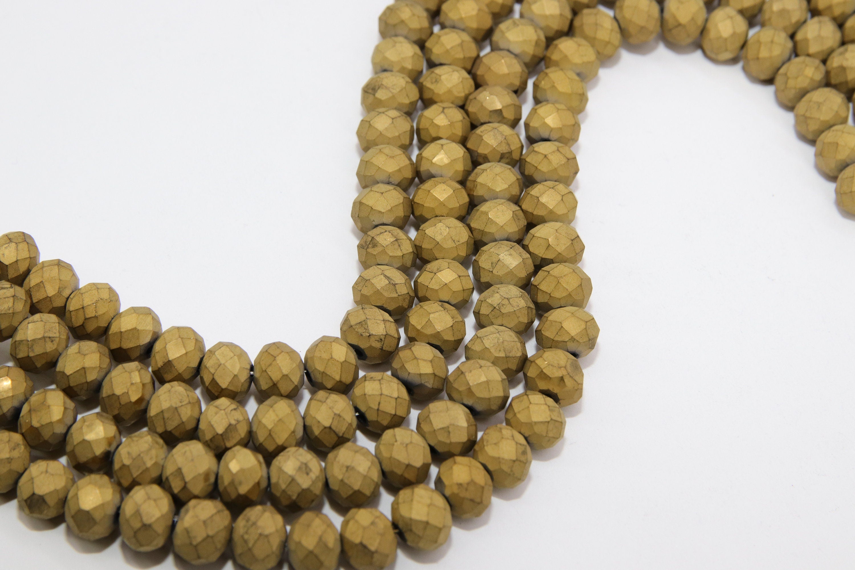 2 Strands Gold Crystal Beads, 8 mm Faceted Matte Gold Crystal Rondelle Beads BS# 260, Electroplated Rondelle Beads 6 x 8 mm 17 Inch Strands