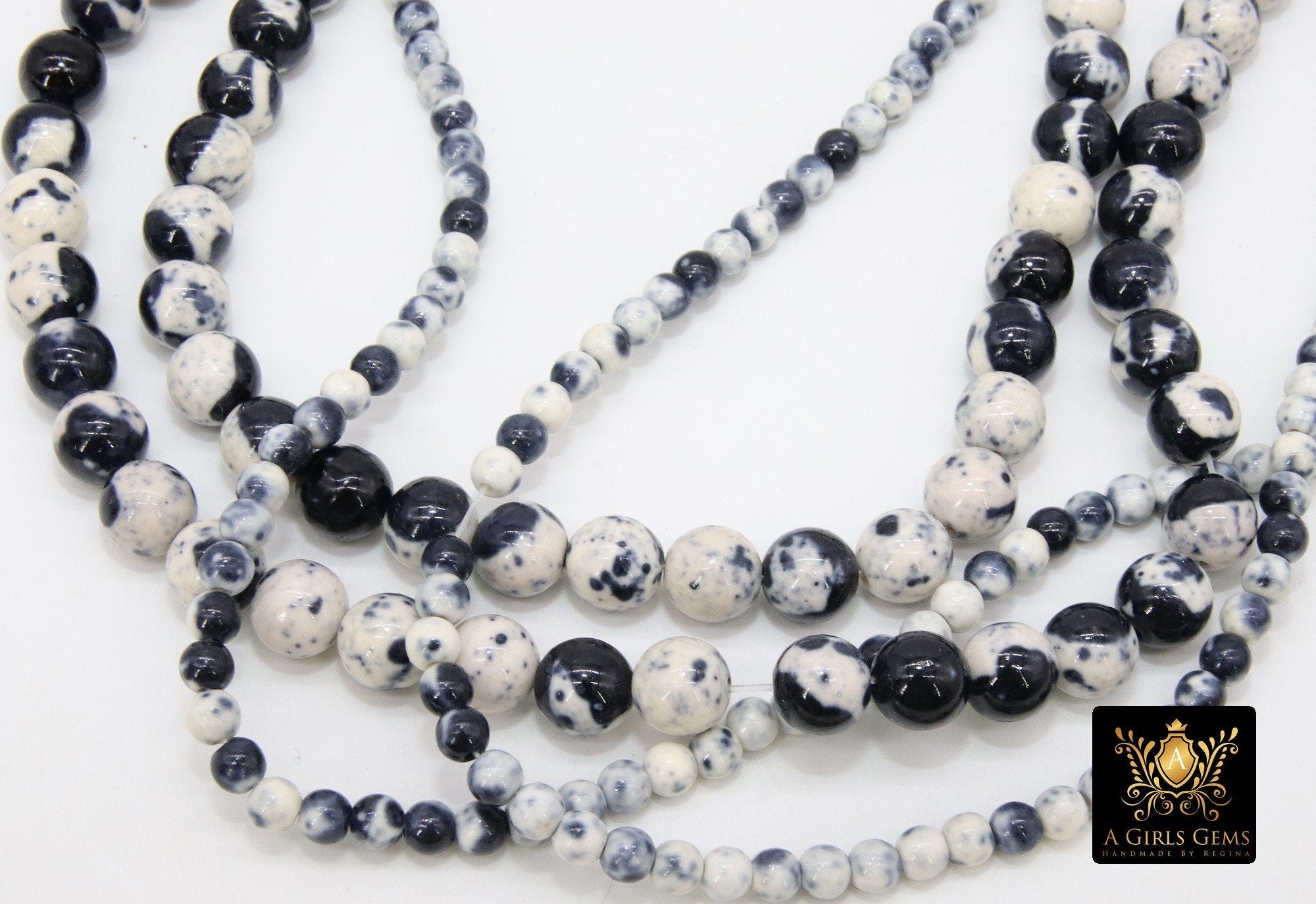 Black and White Beads, Black and White Dyed Pattern Boho Beads BS #87, sizes in 4 mm 8 mm 10 mm 16 inch FULL Strands