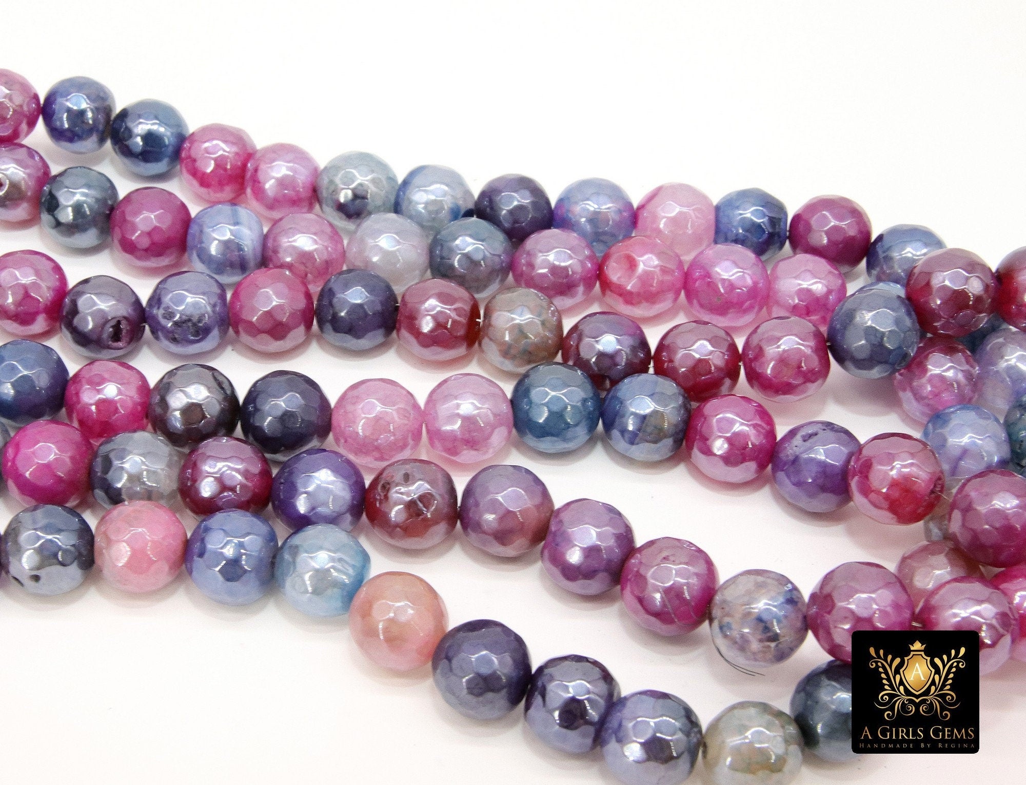 Electroplated Faceted Pink Lavender Agate Beads, Multi Colored Blue Purple Beads BS #241, sizes in 10 mm 14 inch FULL Strands